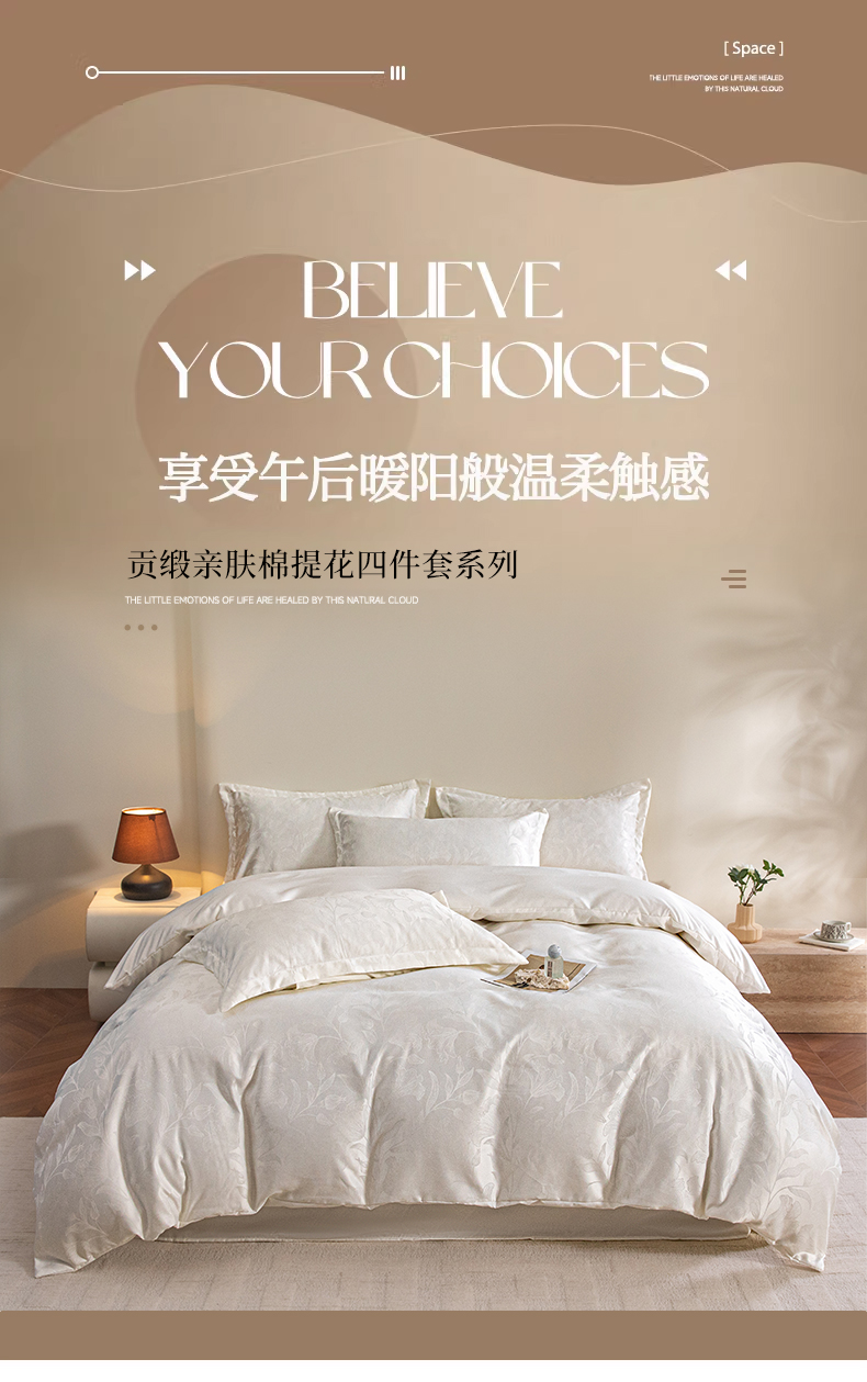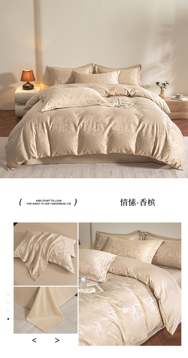 (总)金牛座家纺 2026新款高克重贡缎提花亲肤棉四件套-情愫系列,情愫-灰,情愫-奶白,情愫-浅豆沙,情愫-浅紫,情愫-香槟