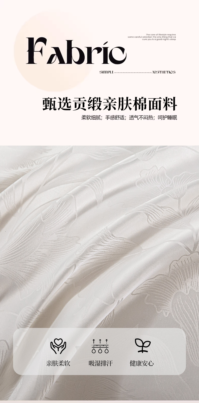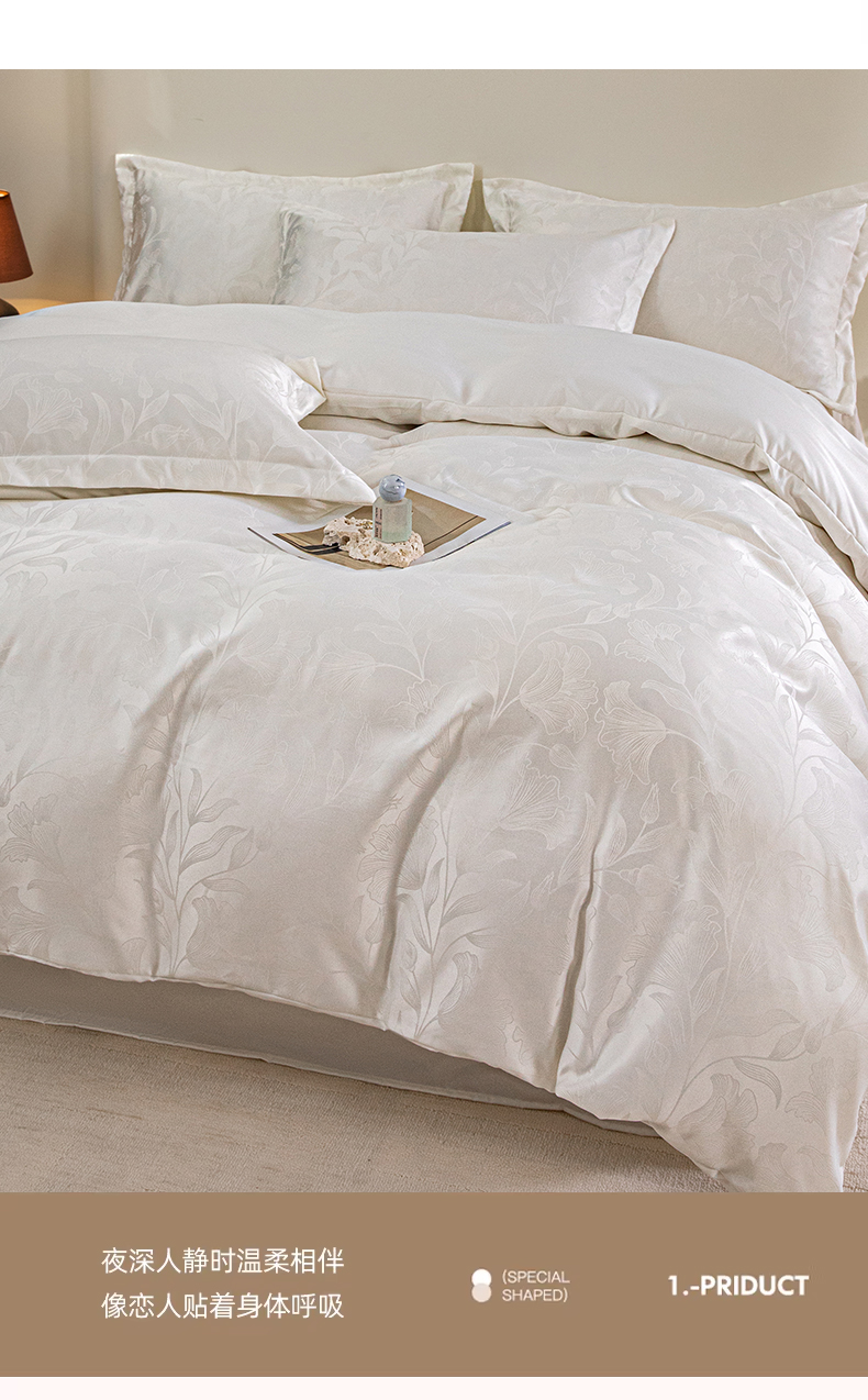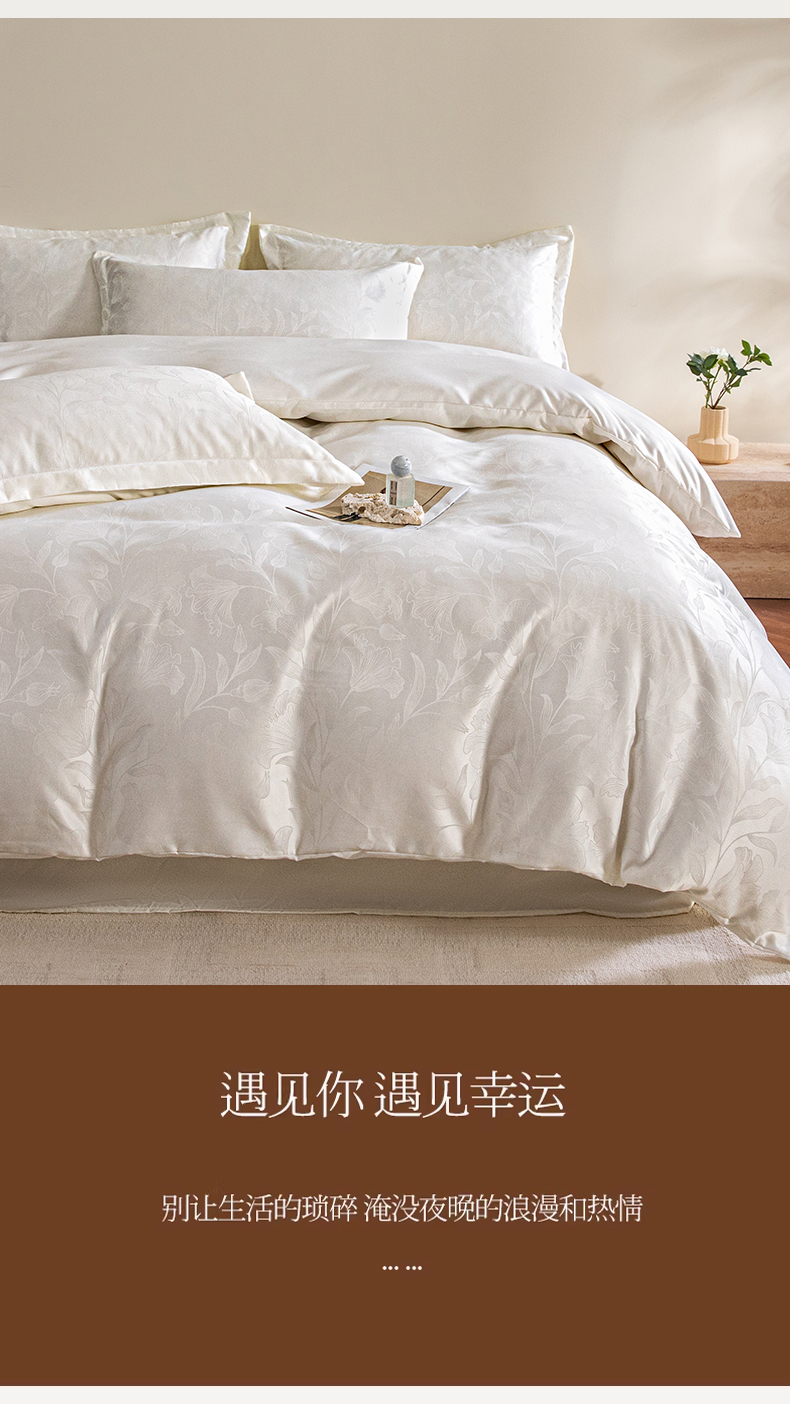 商品名称:金牛座家纺 2026新款高克重贡缎提花亲肤棉四件套系列 情愫-奶白