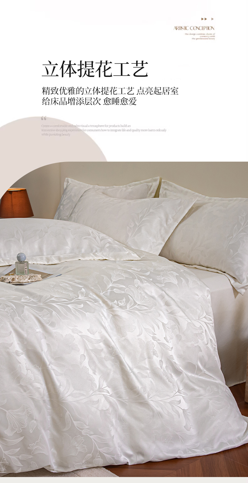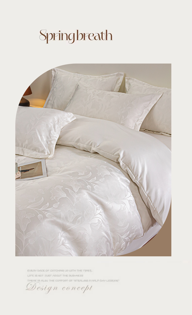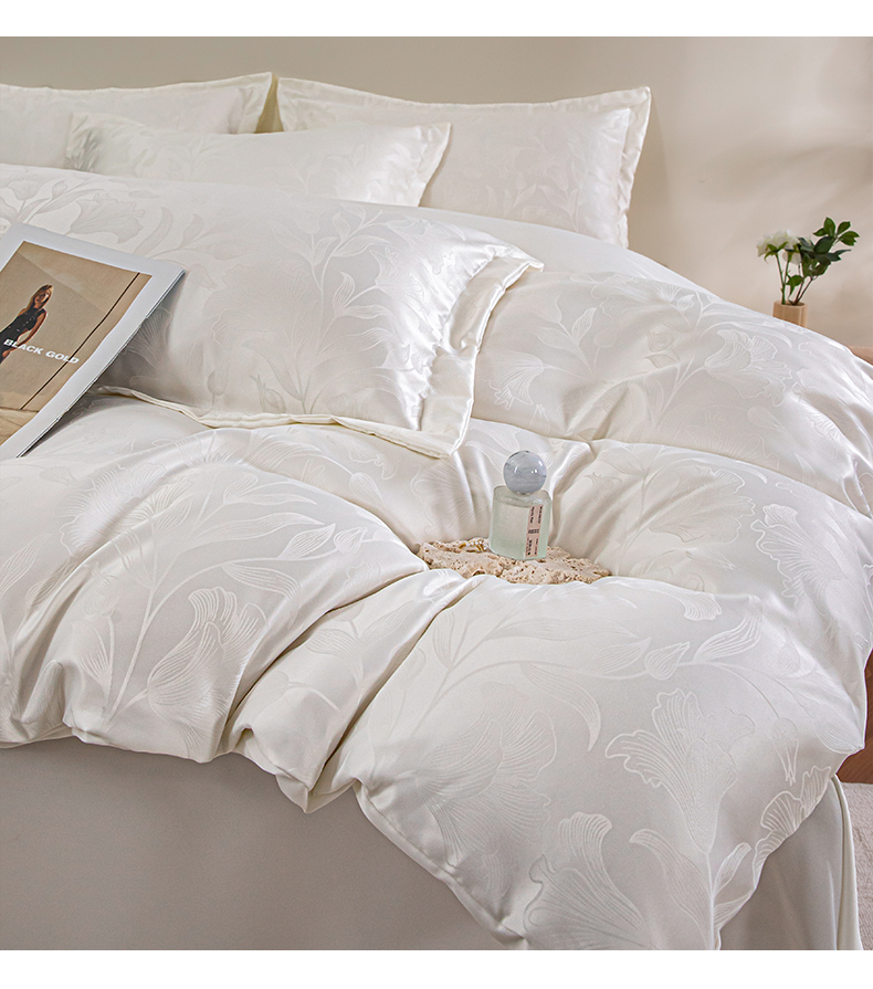 金牛座家纺 2026新款高克重贡缎提花亲肤棉四件套系列 情愫-奶白