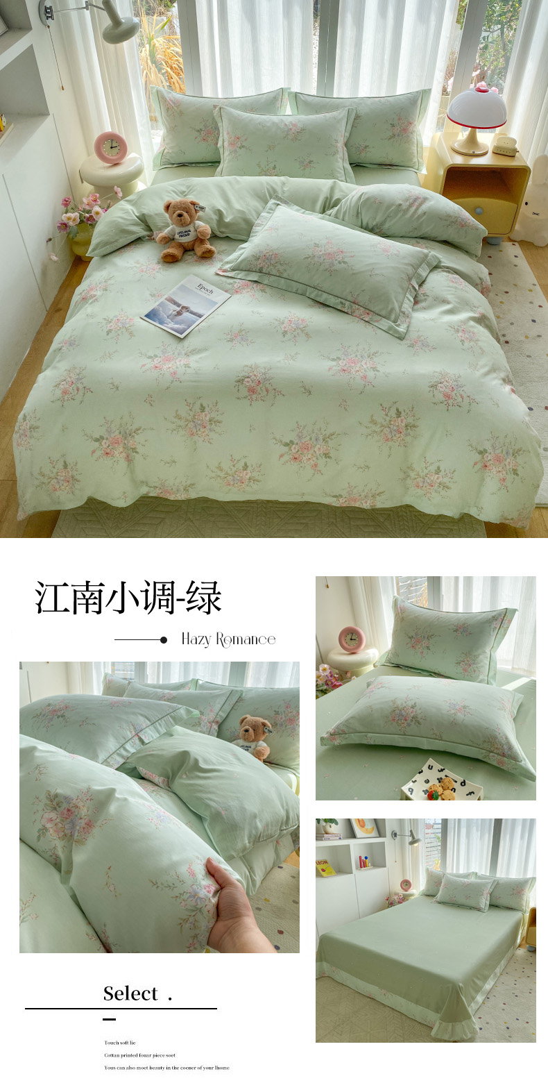 当前位置: 91家纺网 > 商品网购 > 床品套件 > 四件套 > 全棉普通四件套 > 钰锦铂2026新款直播爆款全棉四件套13070吊边床单一字绣印花纯棉三件套四件套 江南小调—绿