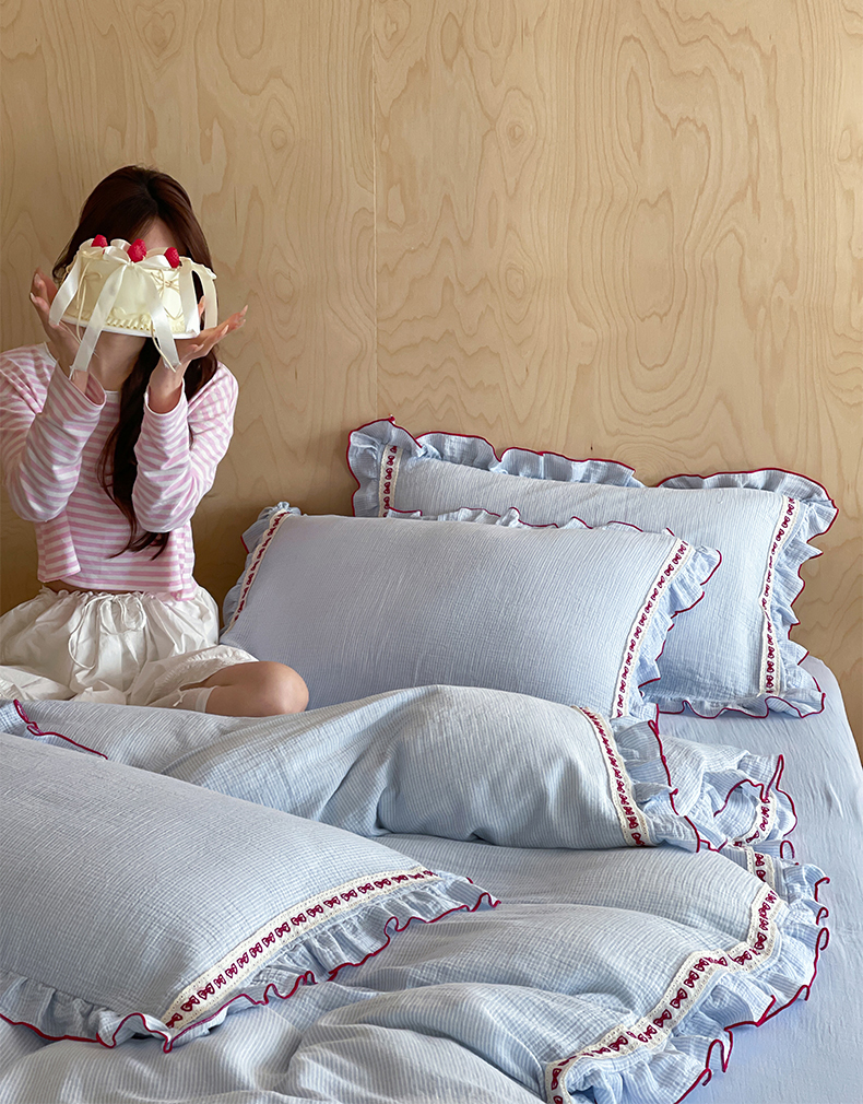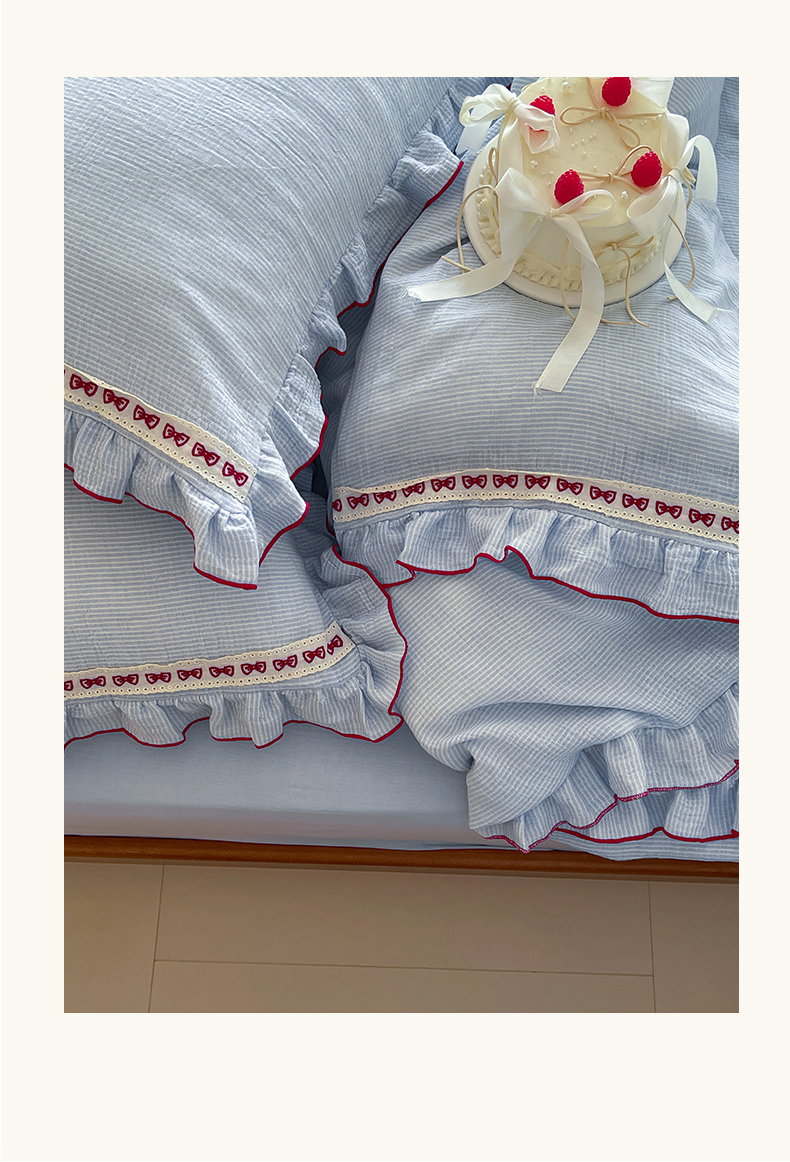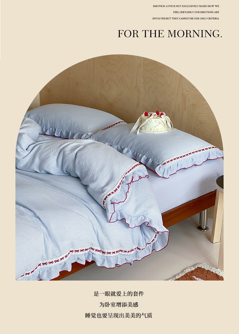 商品名称:(总)玛奇朵 2026新款韩式少女花边刺绣A类双层皱纱四件套
