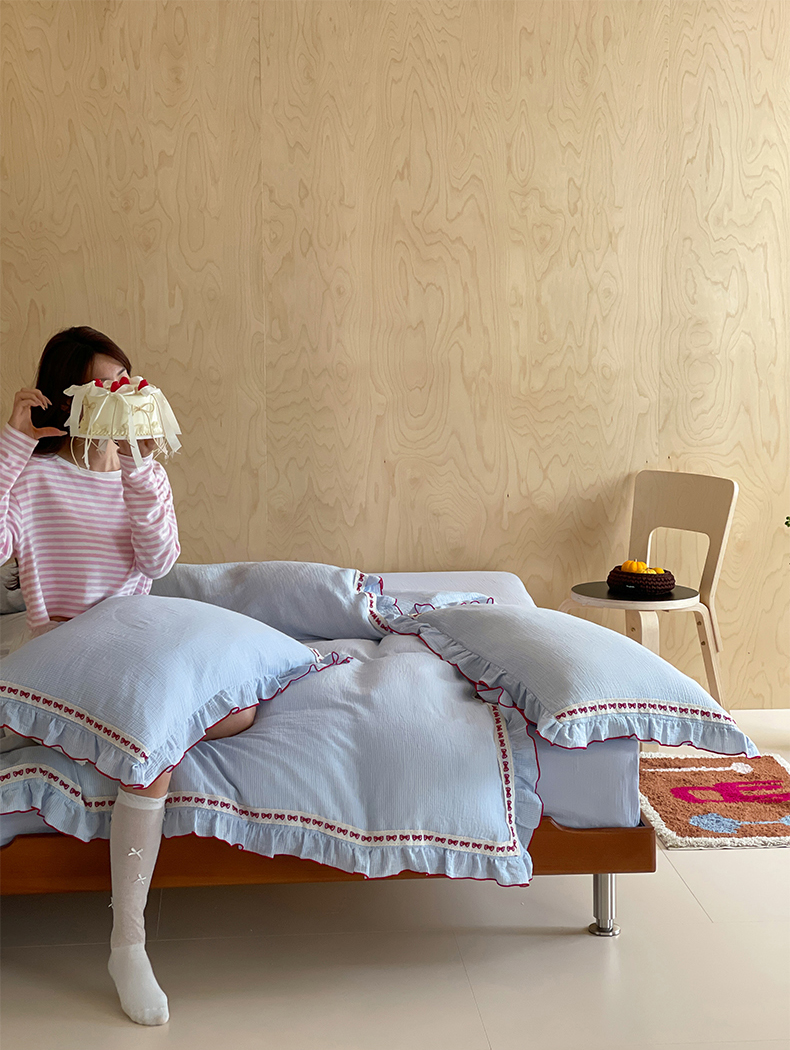(总)玛奇朵 2026新款全棉A类双层纱皱皱纱四件套-费尔岛系列 会员-10/基础控价 298/338/358,费尔岛-粉,费尔岛-咖,费尔岛-蓝