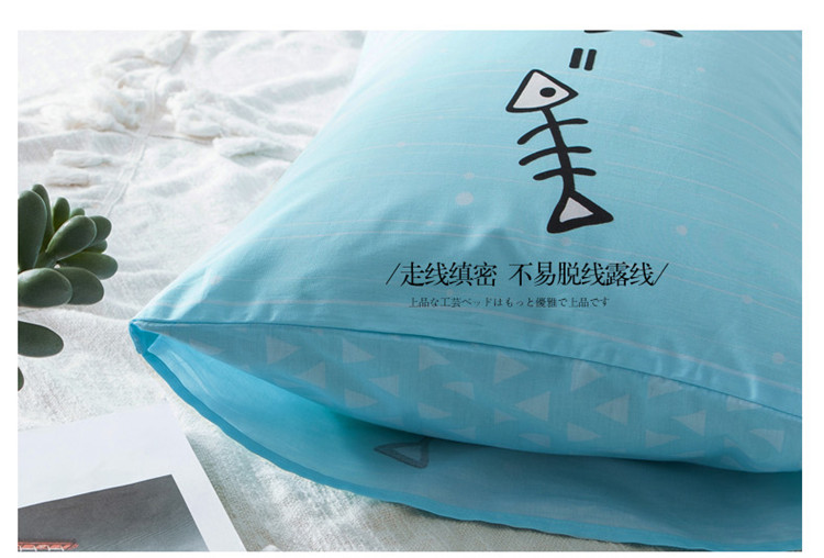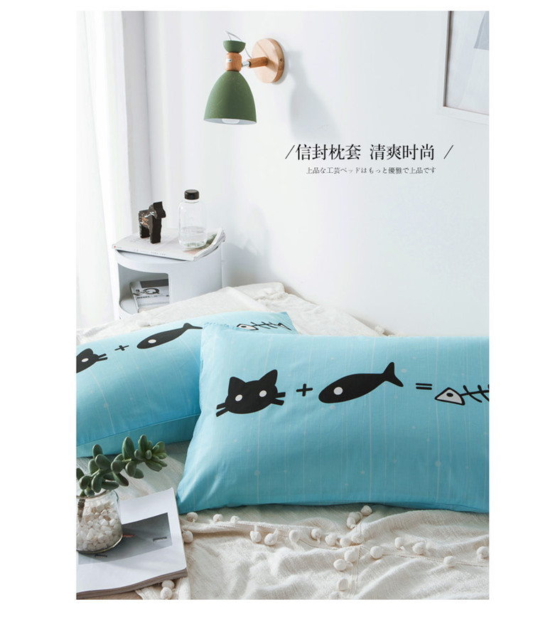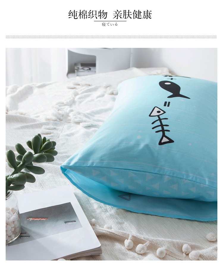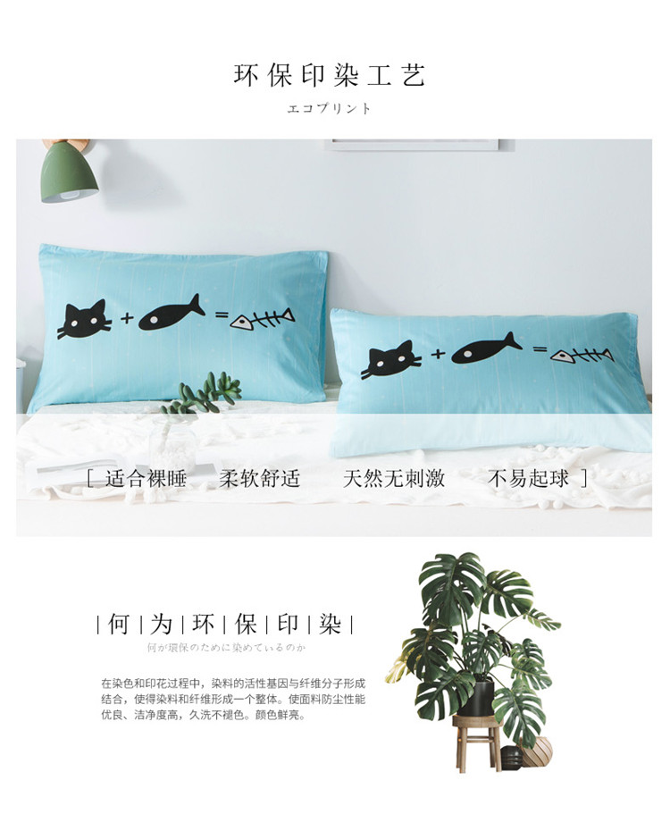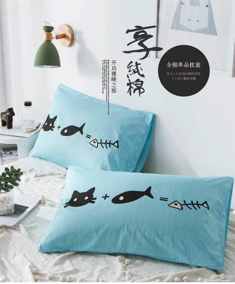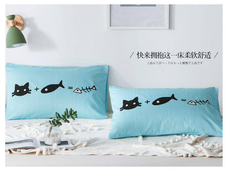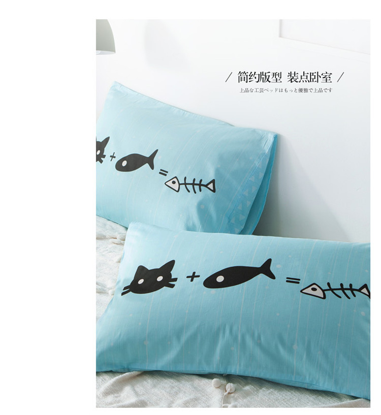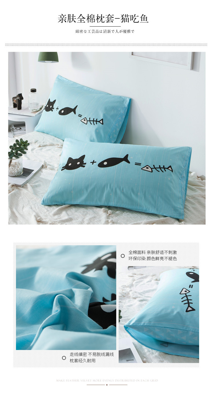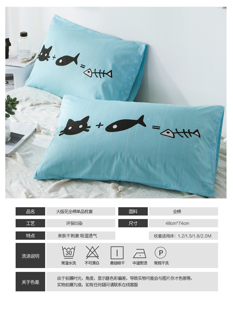 涵宸家纺 新款单品大版全棉枕套48*74一对 猫吃鱼