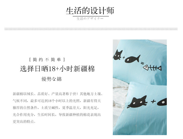 商品名称:涵宸家纺 新款单品大版全棉枕套48*74一对 猫吃鱼