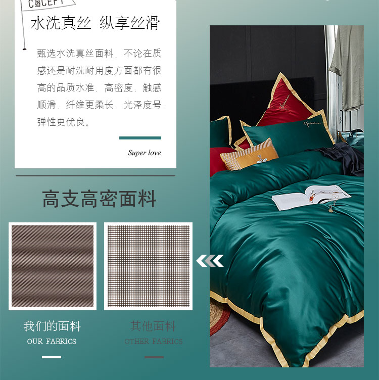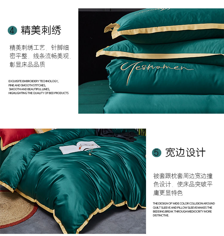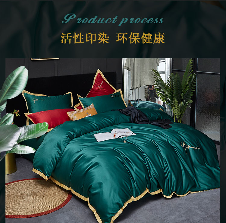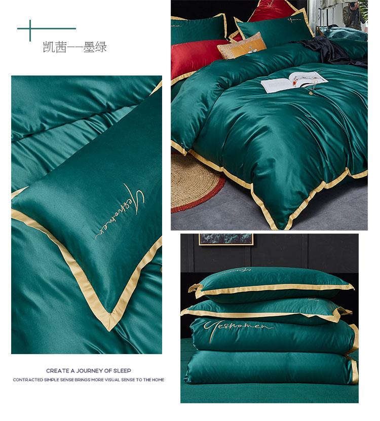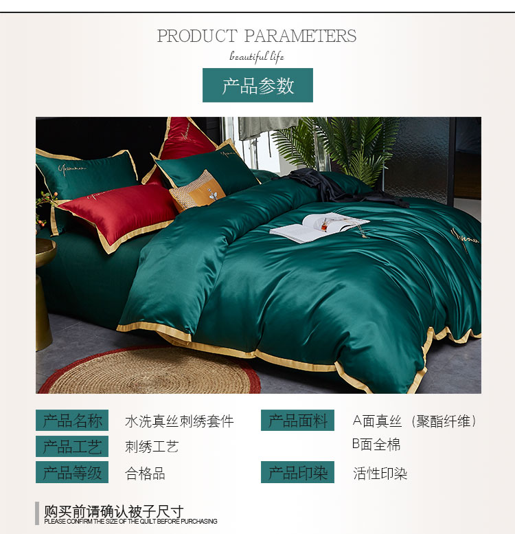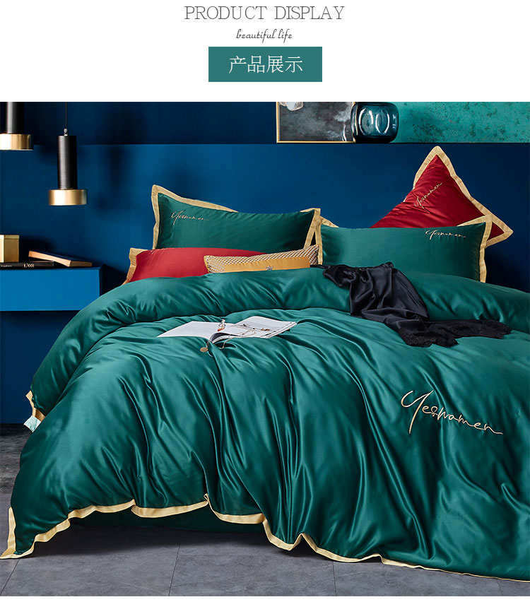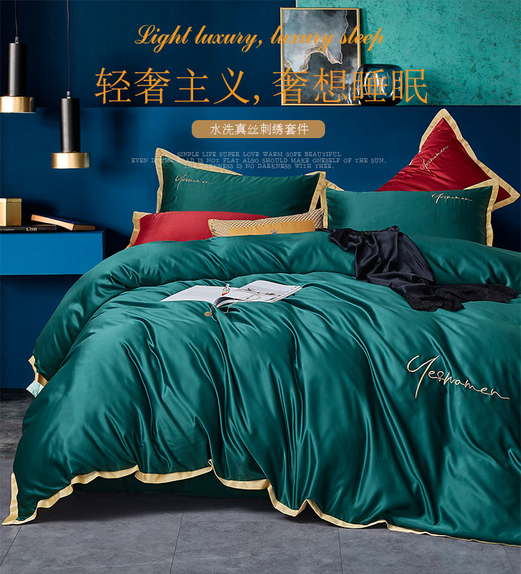 商品名称:安妮 2020新款水洗真丝凯茜四件套 墨绿
