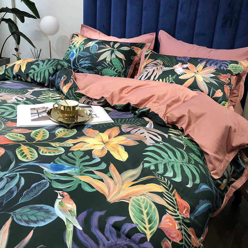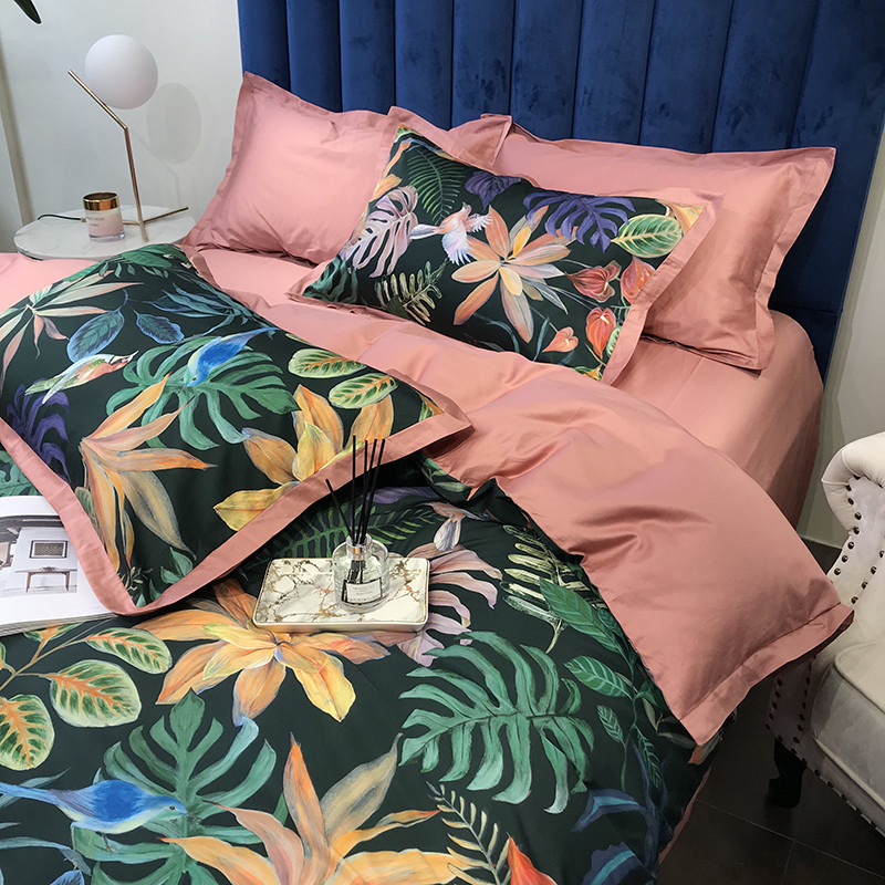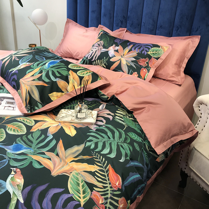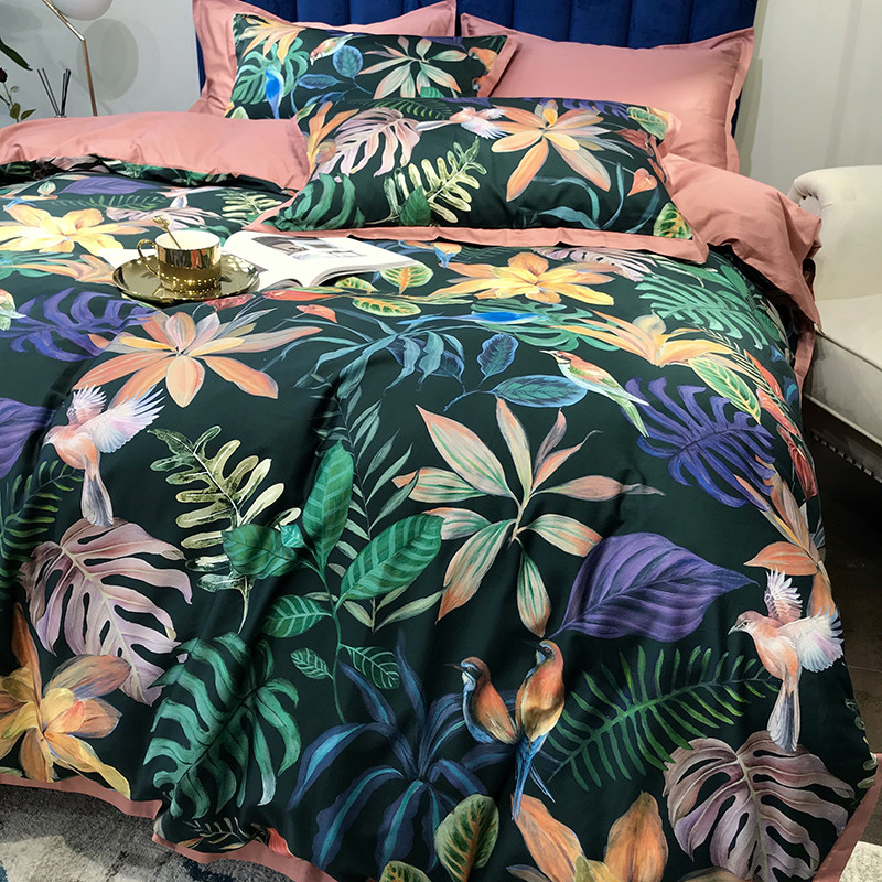 太古汇 60支贡缎长绒棉数码印花小边款四件套 温妮莎-绿