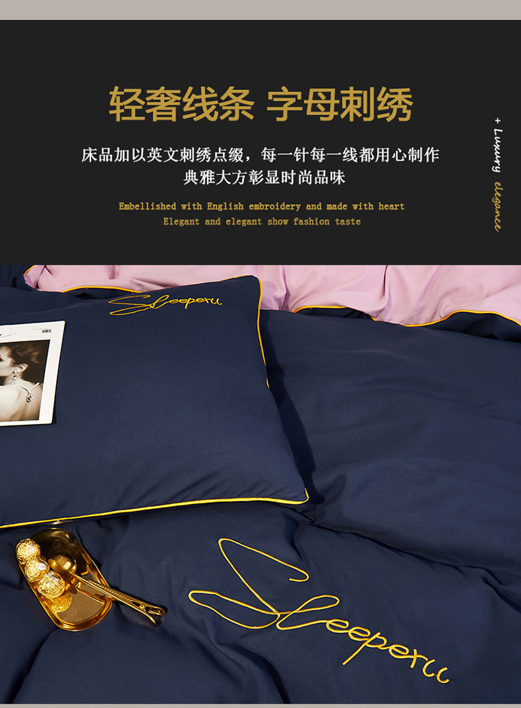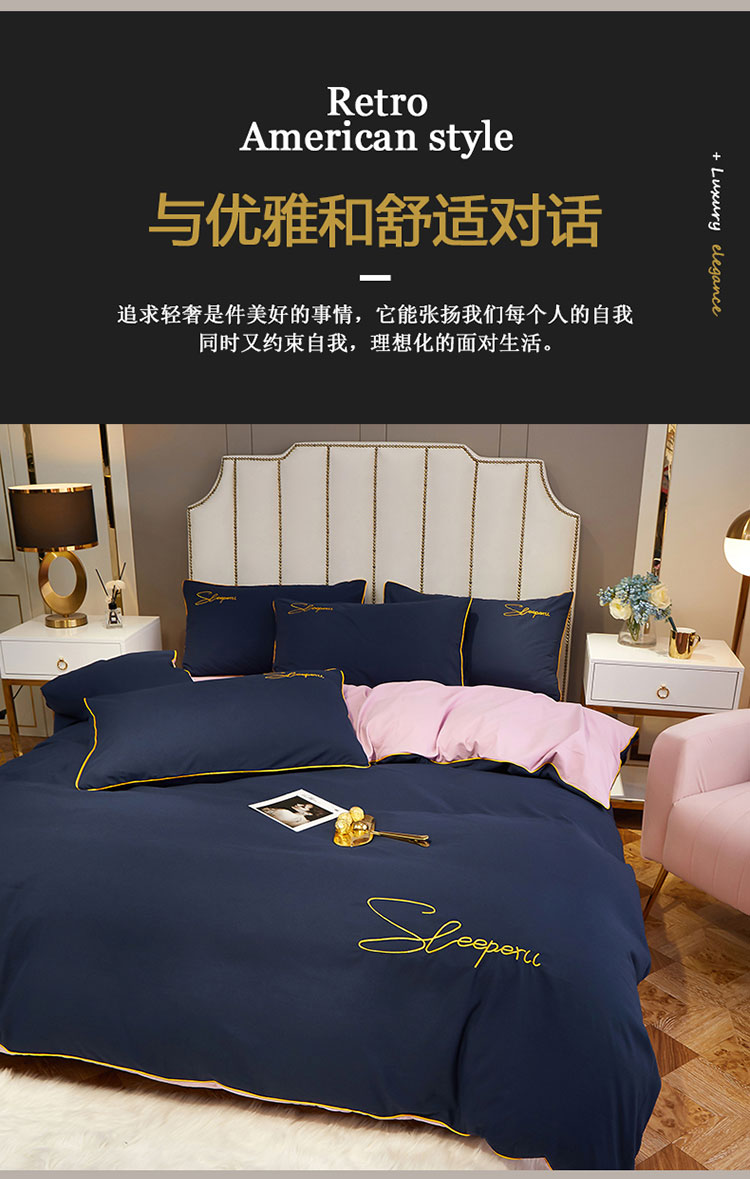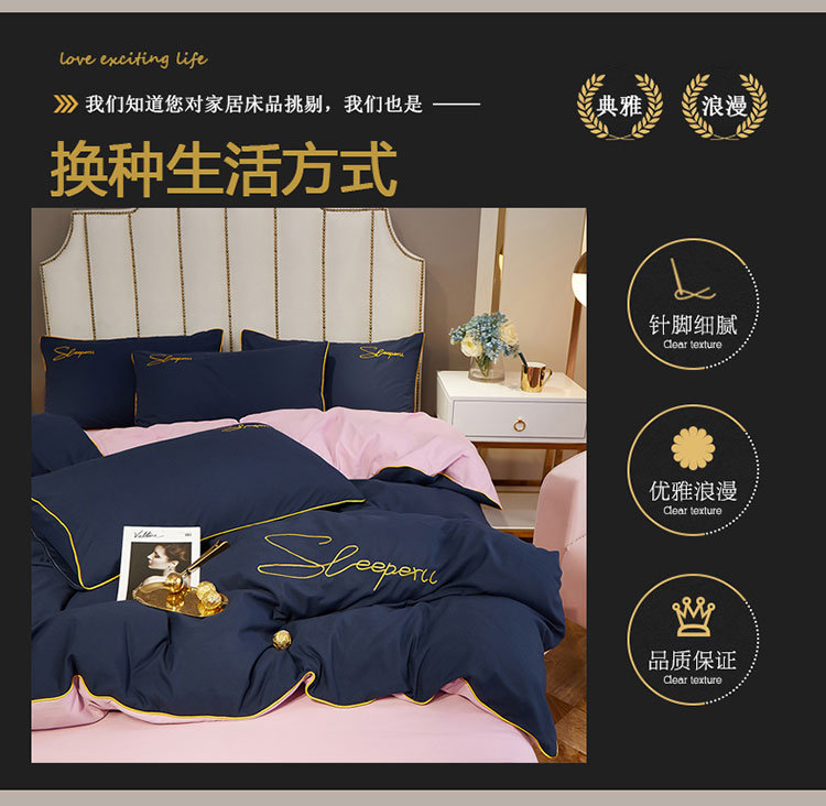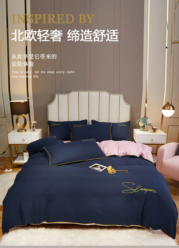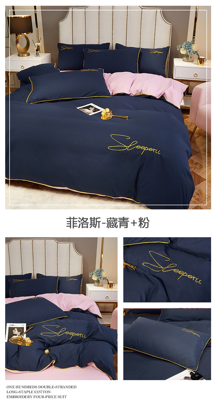 当前位置: 91家纺网 > 商品网购 > 床品套件 > 四件套 > 全棉普通四件套 > 曼谷 新款轻奢刺绣四件套菲洛斯系列 菲洛斯-藏青+粉