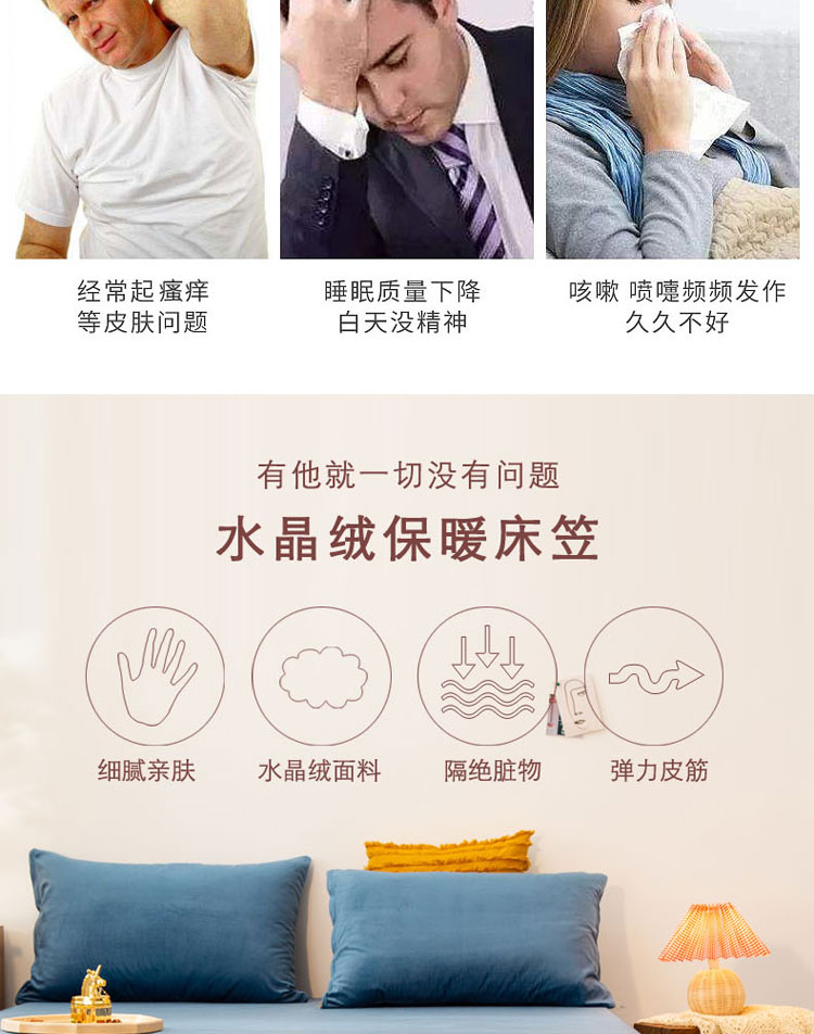 商品名称:梦家居 2020秋冬单品水晶绒床笠 雾蓝色