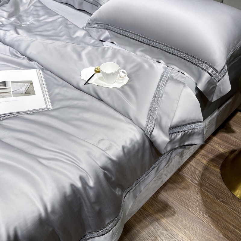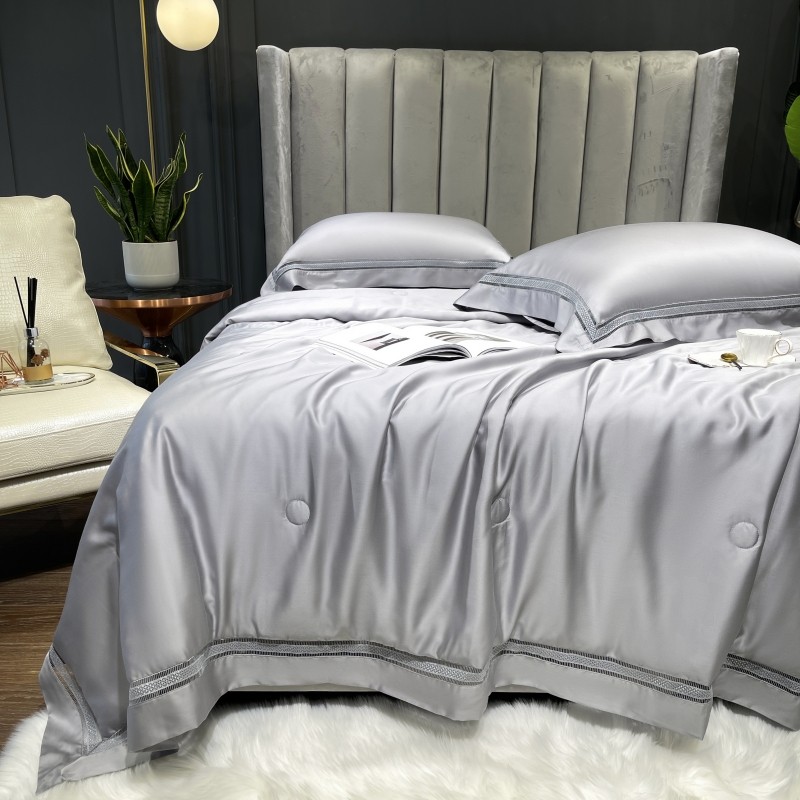 当前位置: 91家纺网 > 商品网购 > 被子 > 莱赛尔夏被 > 榻尚家居2021新款天丝夏被床单款床笠款四件套夏灰