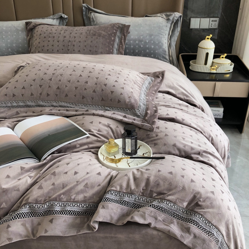 榻尚2023新款进口蕾丝缕空260克公主绒加厚牛奶绒秋冬款四件套,低调的华丽-粉玉,低调的华丽-海雾蓝,低调的华丽-奶茶棕,低调的华丽-象牙白