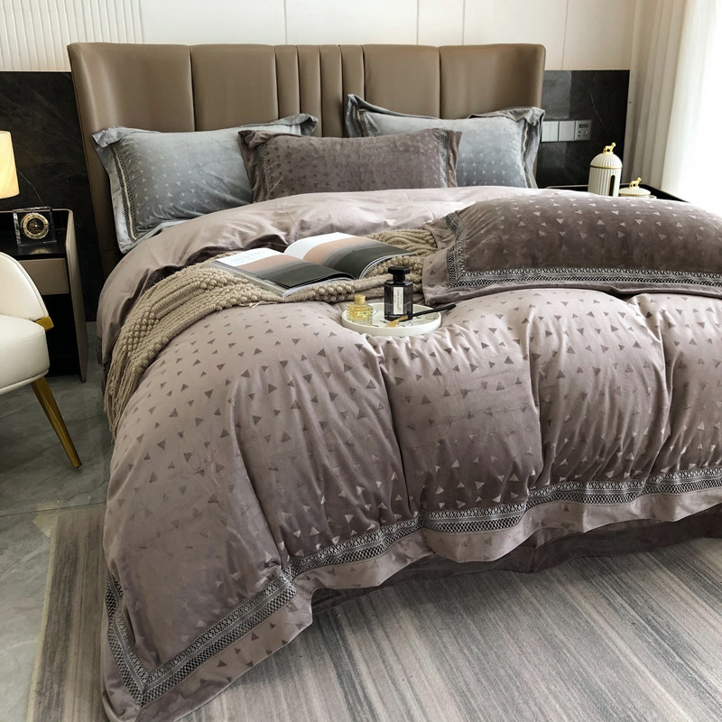 (总)榻尚家居 2025新款秋冬加厚绵阳绒牛奶绒四件套,绵阳绒灰色,绵阳绒蓝色,绵阳绒棕色