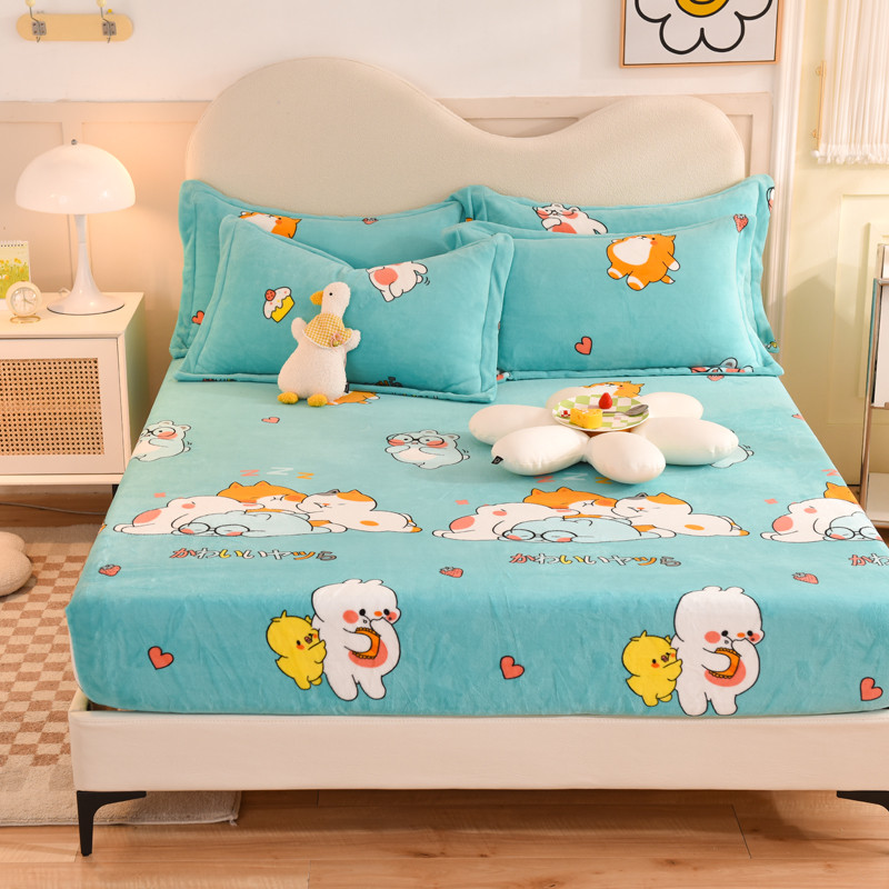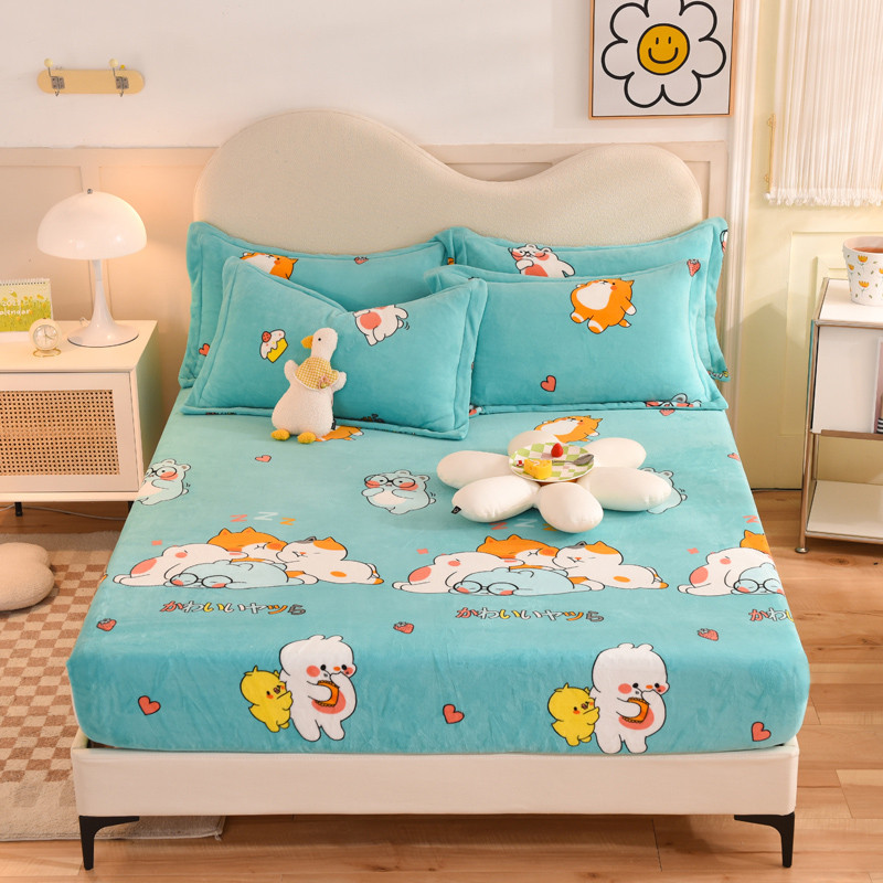 甜之梦2025新款印花牛奶绒单品床笠可定制任何尺寸(可接异型缺角)乖乖熊