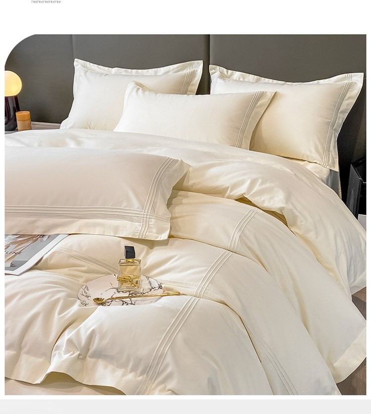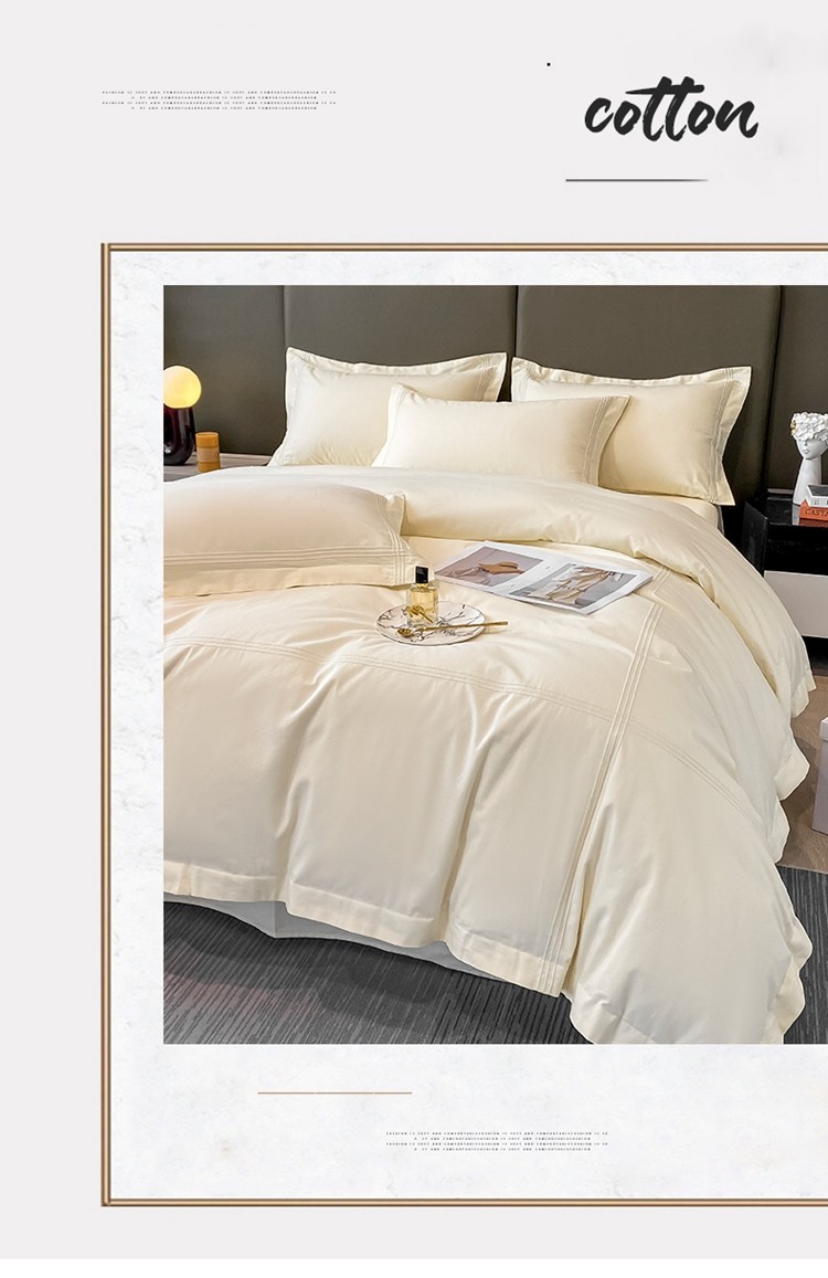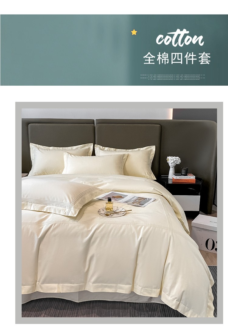 (总)安妮家居 2025新款100S长绒棉贡缎纯色四件套,水漾蓝,胧月灰,奶白色,蔷薇粉,柔缦紫,砂砾咖