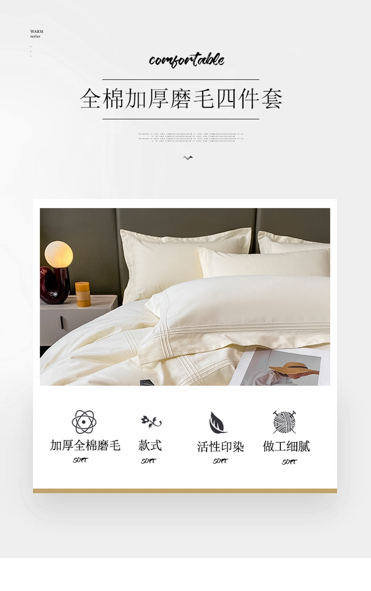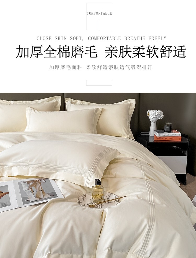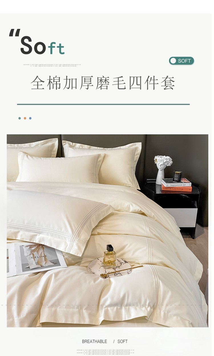 商品名称:安妮2022新款轻奢赫本加厚全棉磨毛四件套 赫本奶油白