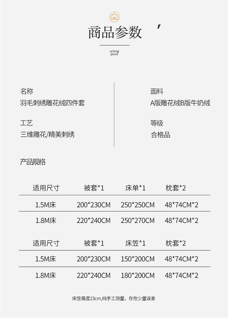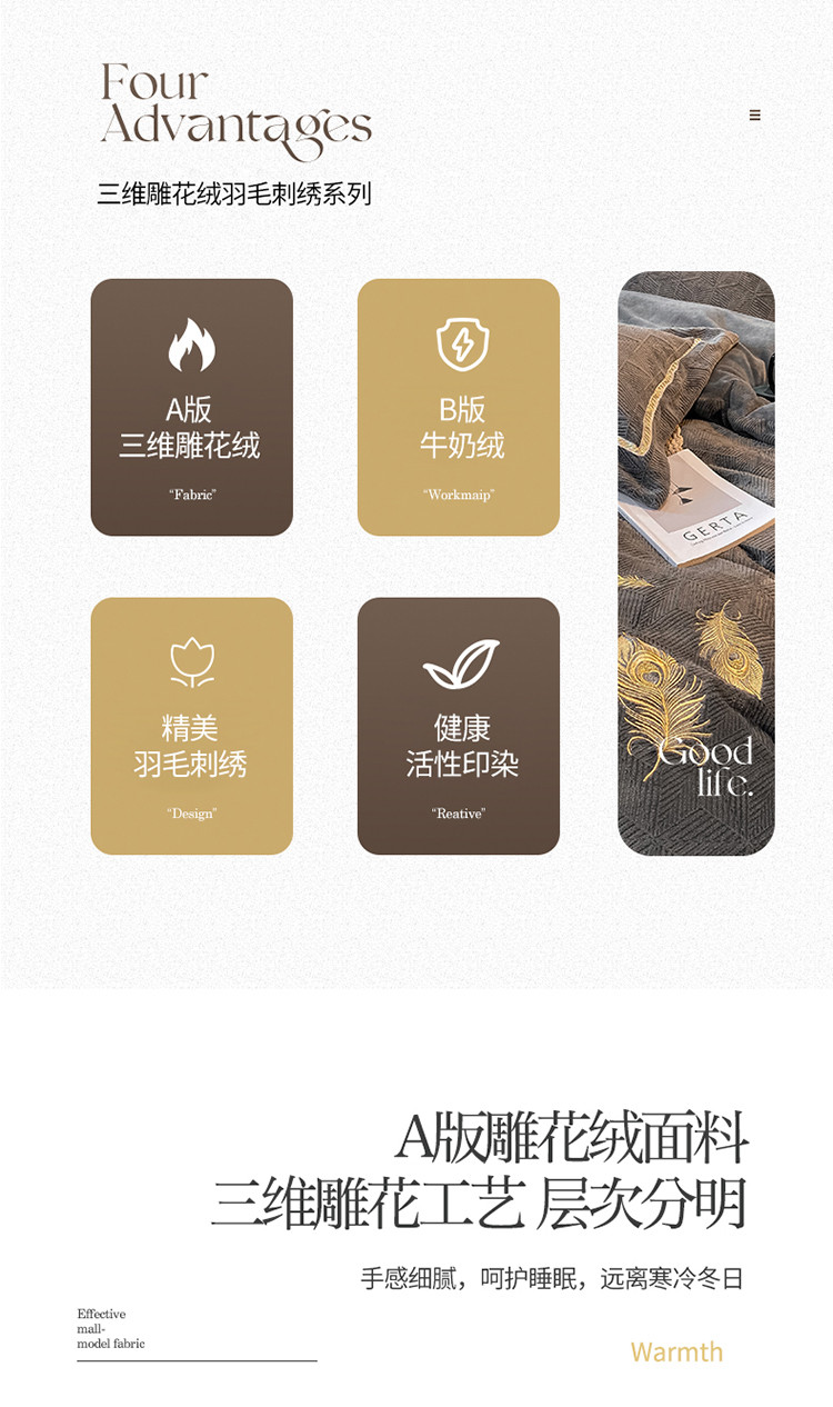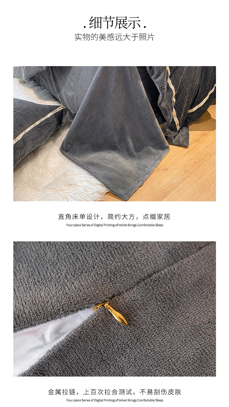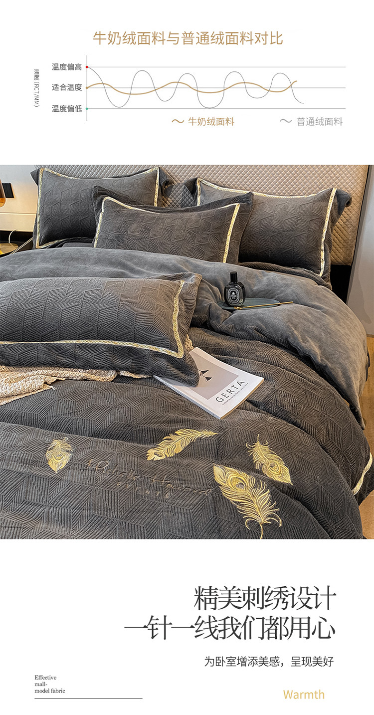 商品名称:吾秀家居 2022新款羽毛刺绣雕花绒四件套 羽毛深灰