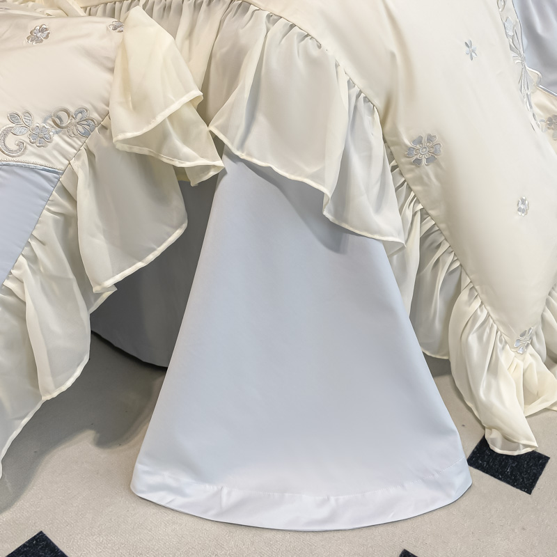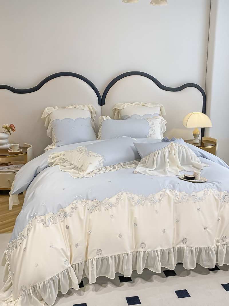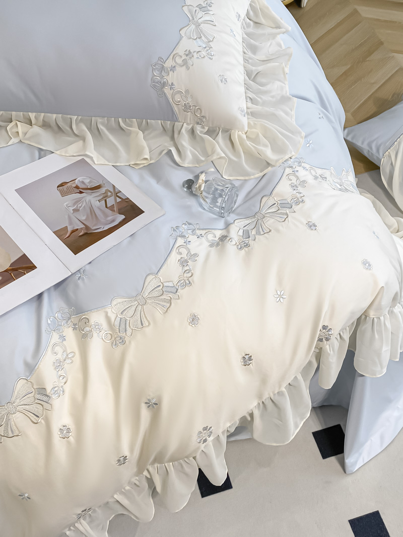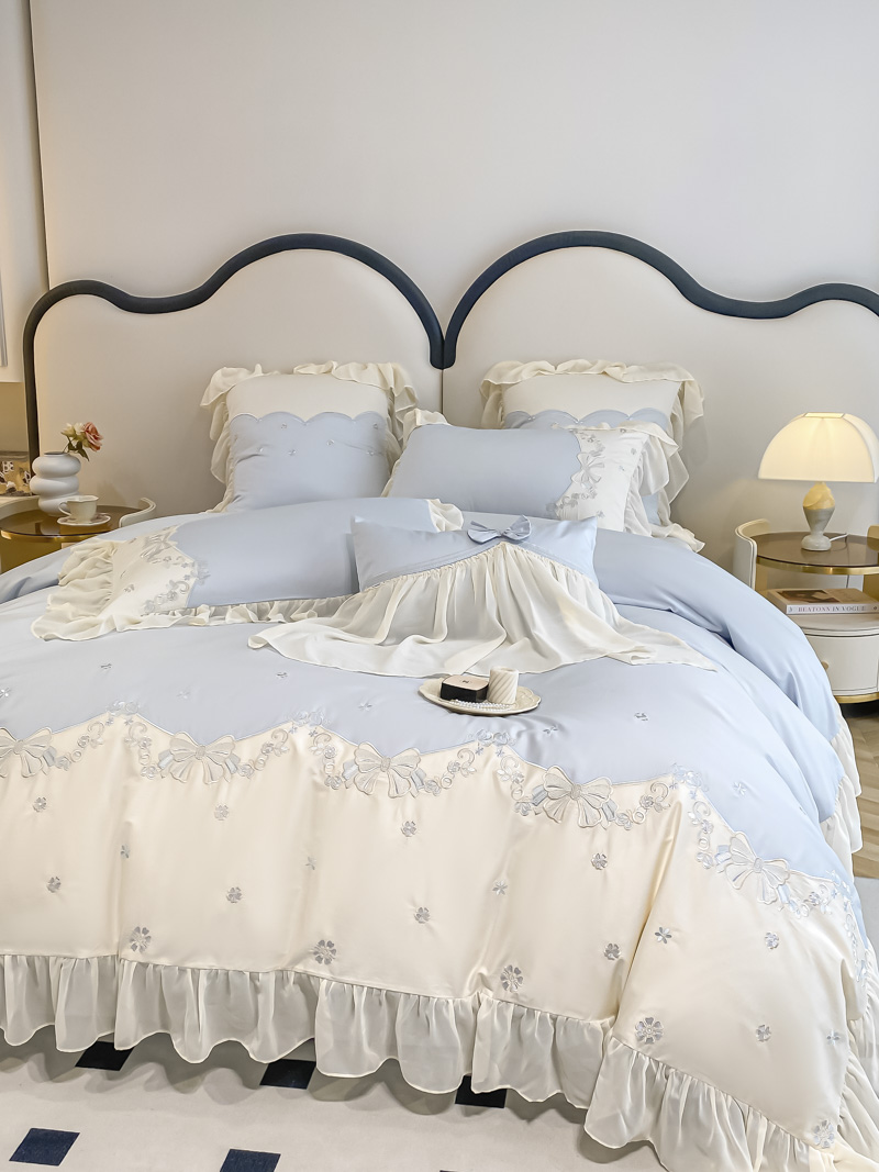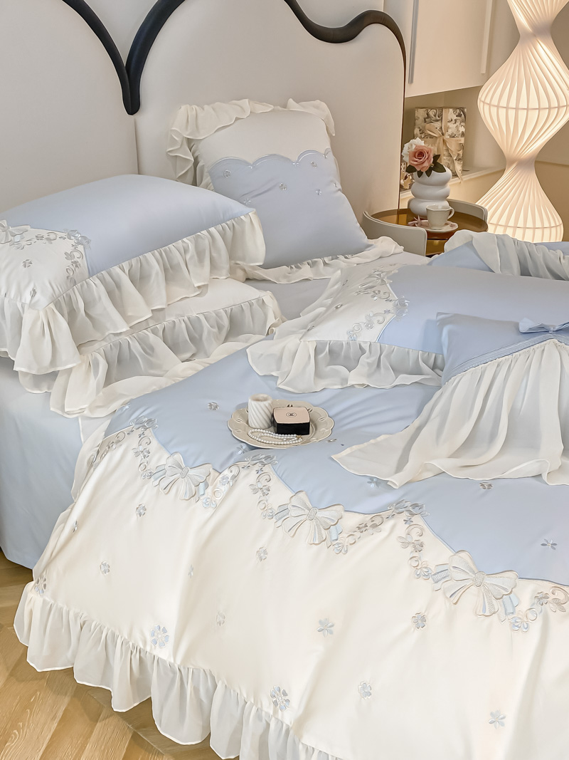 (总)2025新款牛奶绒拼纱四件套-洛可可,白色,粉紫,蓝色,浅灰色,水绿