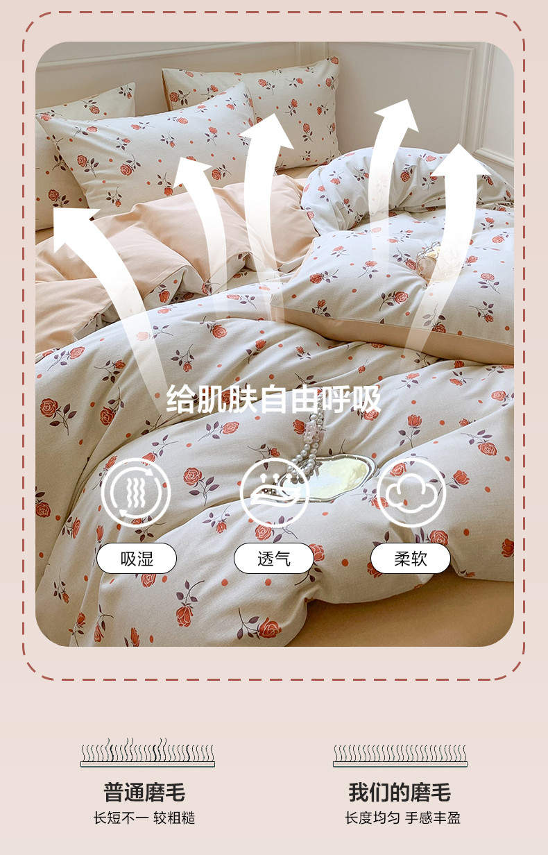 商品名称:澳萝拉 2023新款磨毛四件套-花卉系列 花开半夏