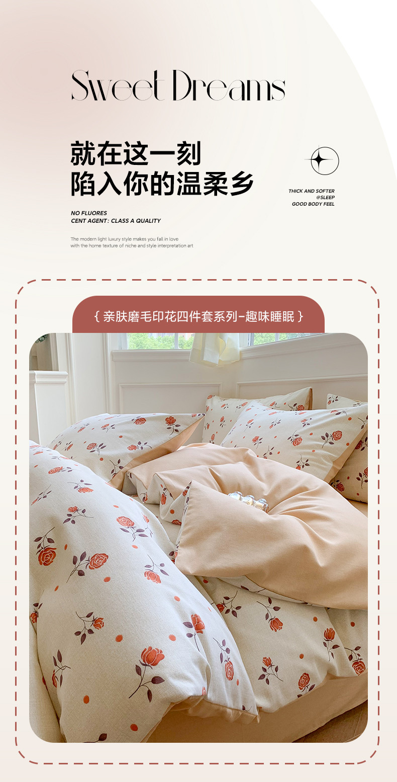 澳萝拉 2023新款磨毛四件套-花卉系列 花开半夏