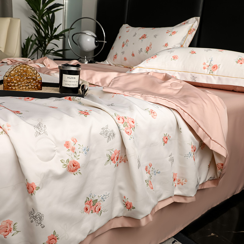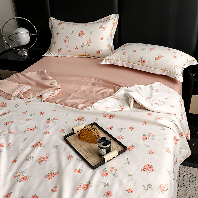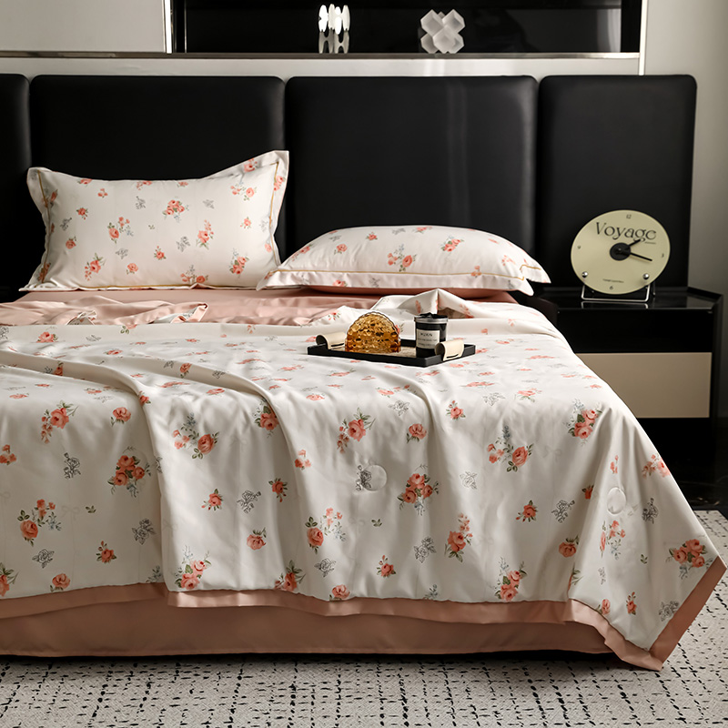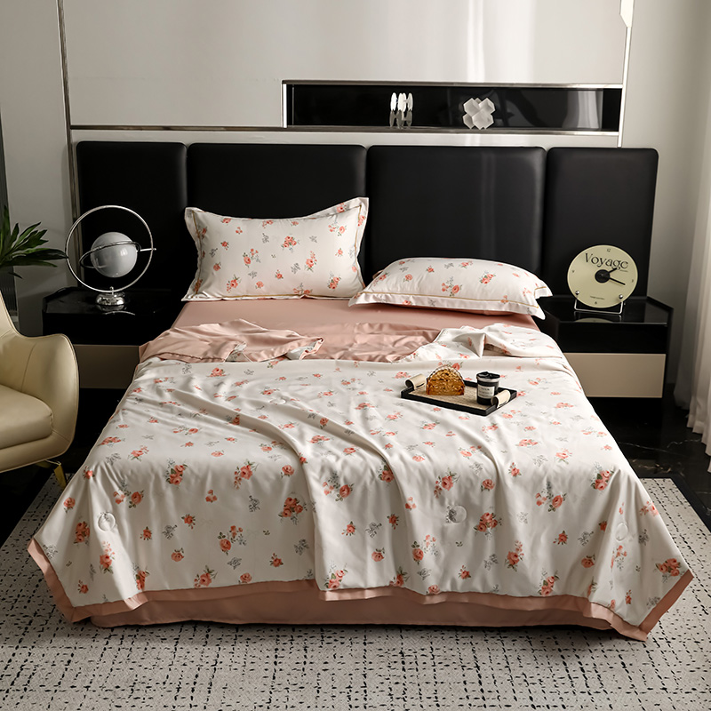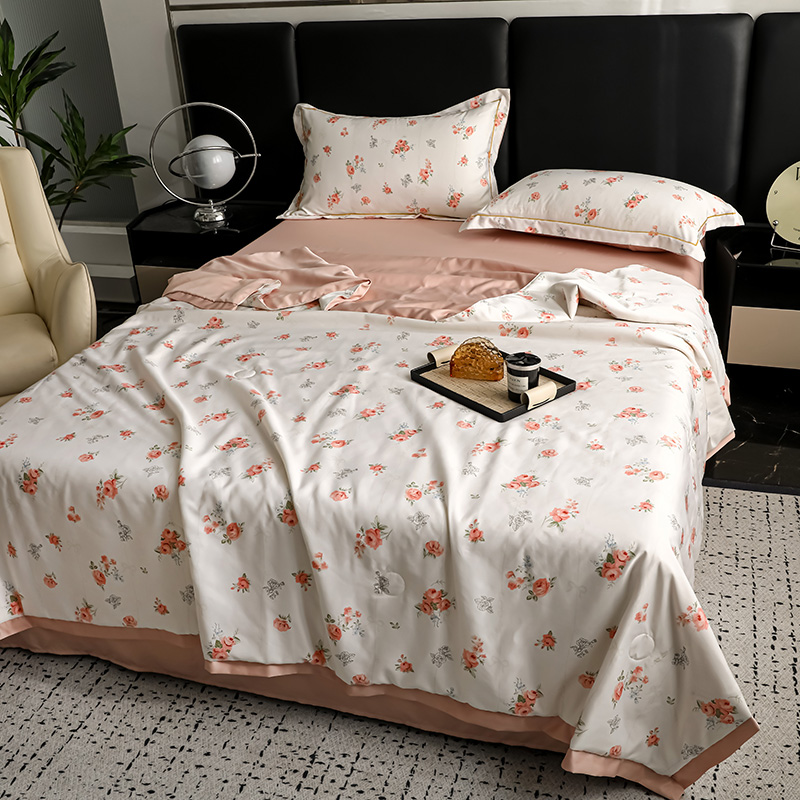 亚龙工厂店 2024新款水洗真丝夏被四件套 桔朵