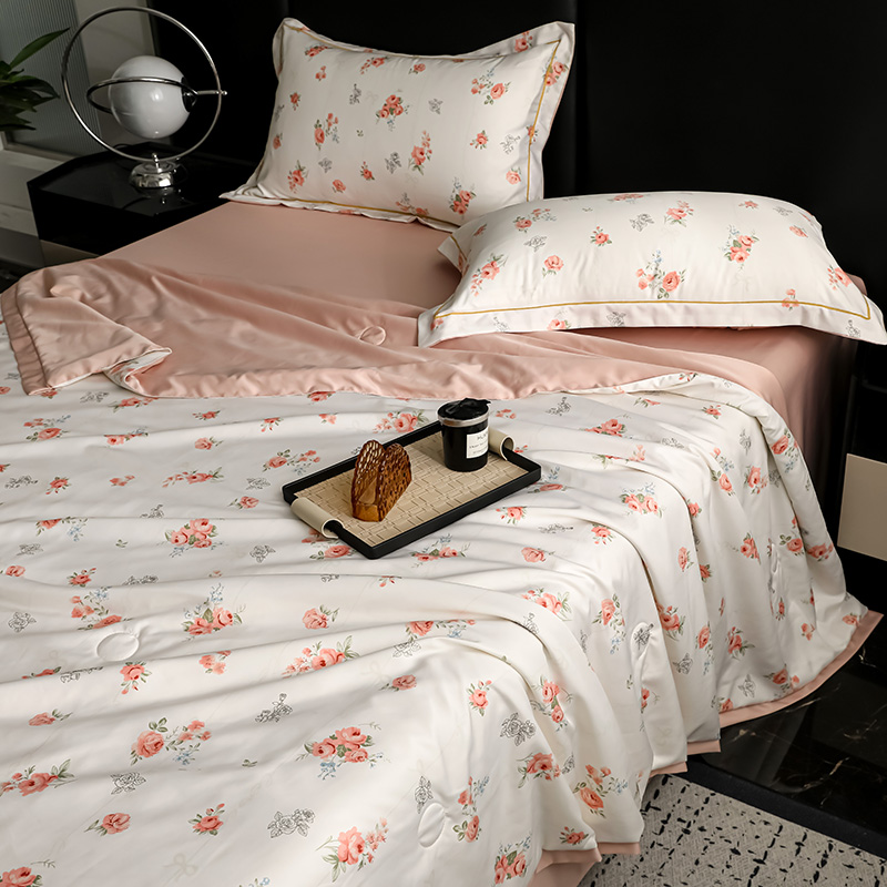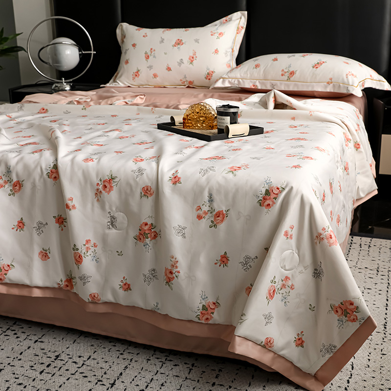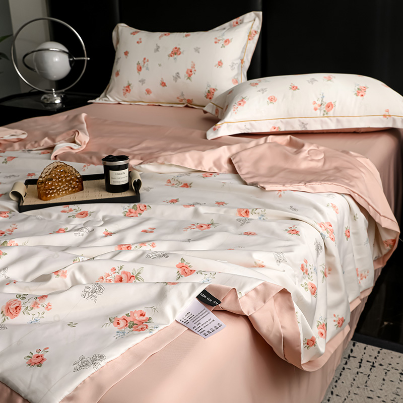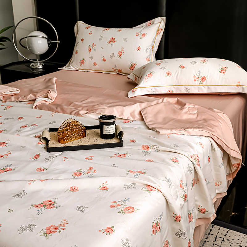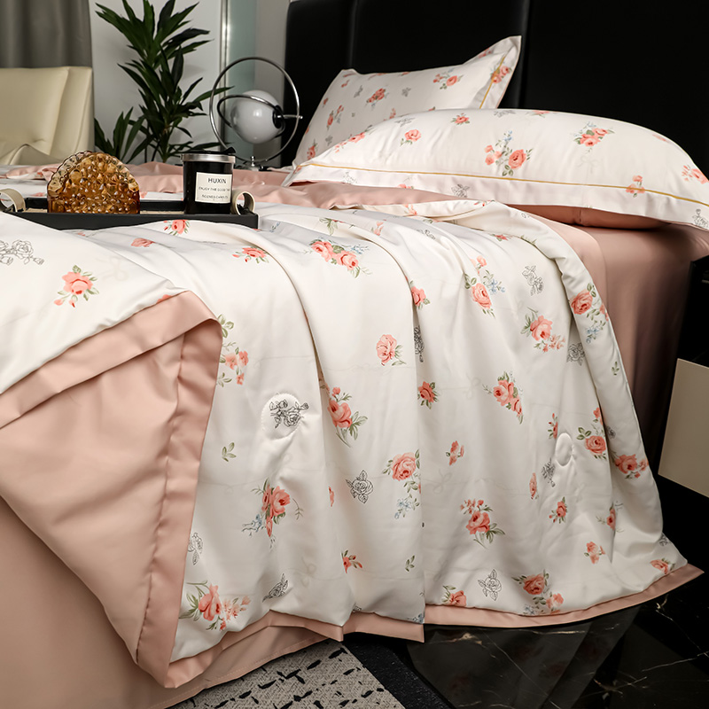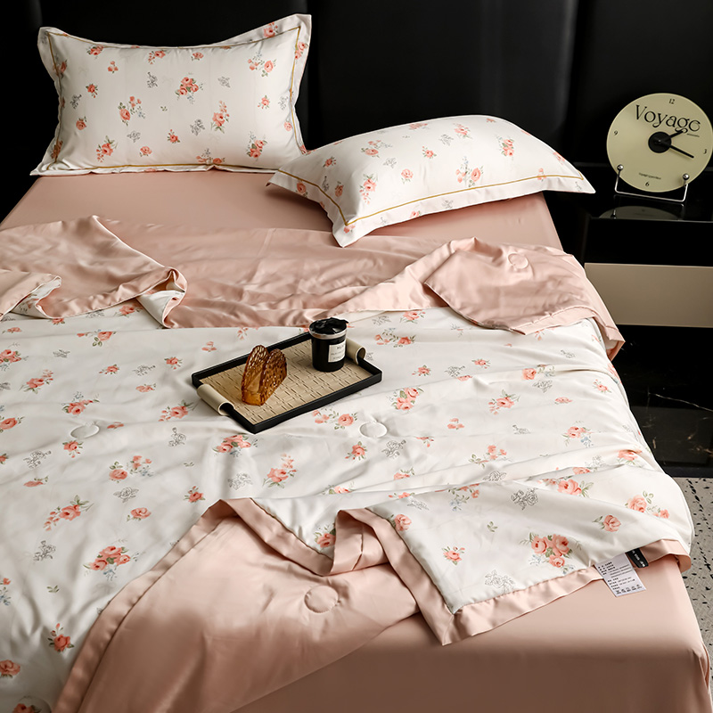 亚龙工厂店 2024新款水洗真丝夏被四件套 桔朵