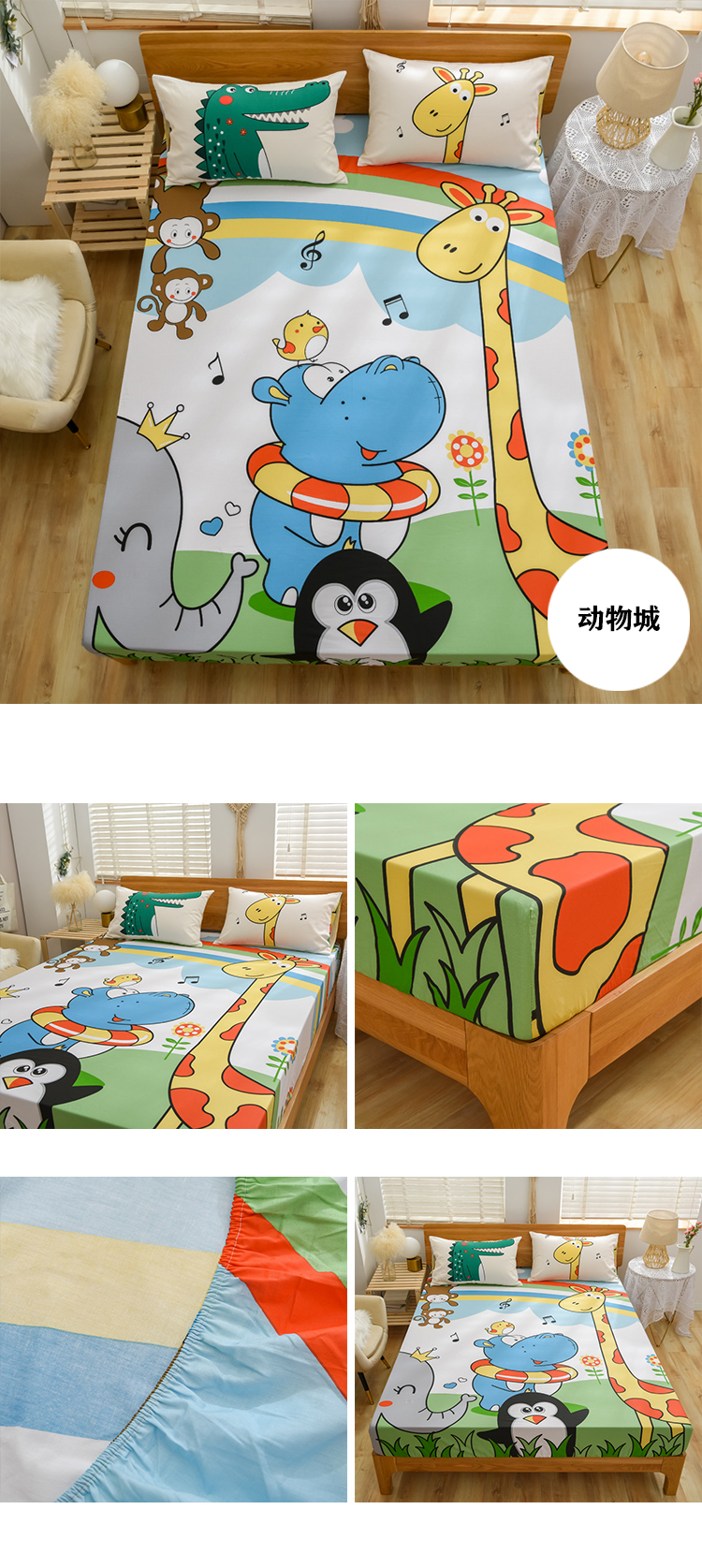 商品名称:沐白家居 2024新款纯棉喷气133*72二次元大版印花单床笠 动物城