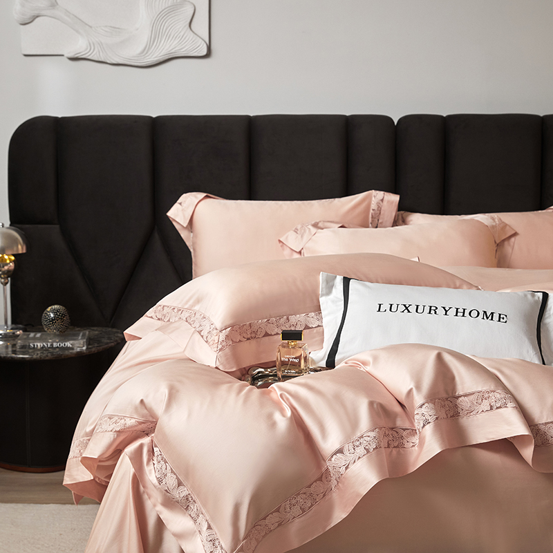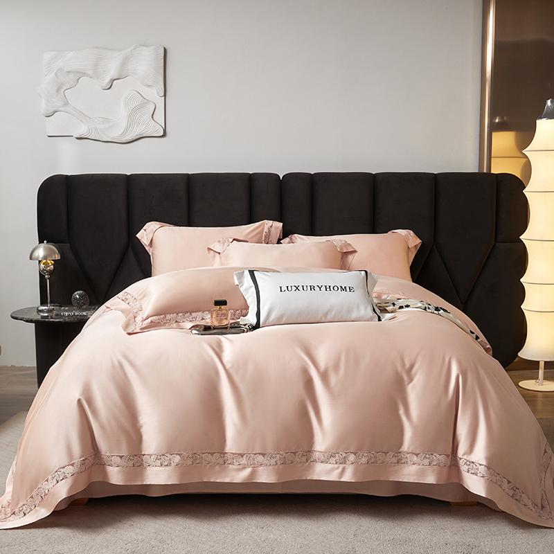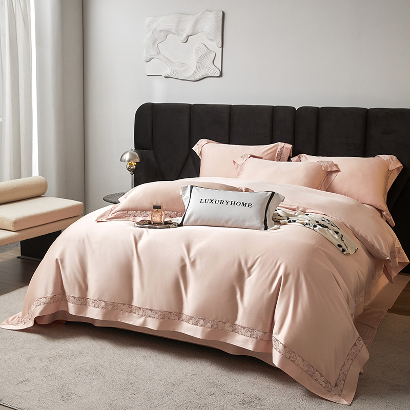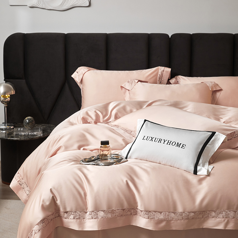 商品名称:榻尚家居 2024新款天丝棉法式镂空工艺款四件套--云绡(会员减20) 珠玉粉