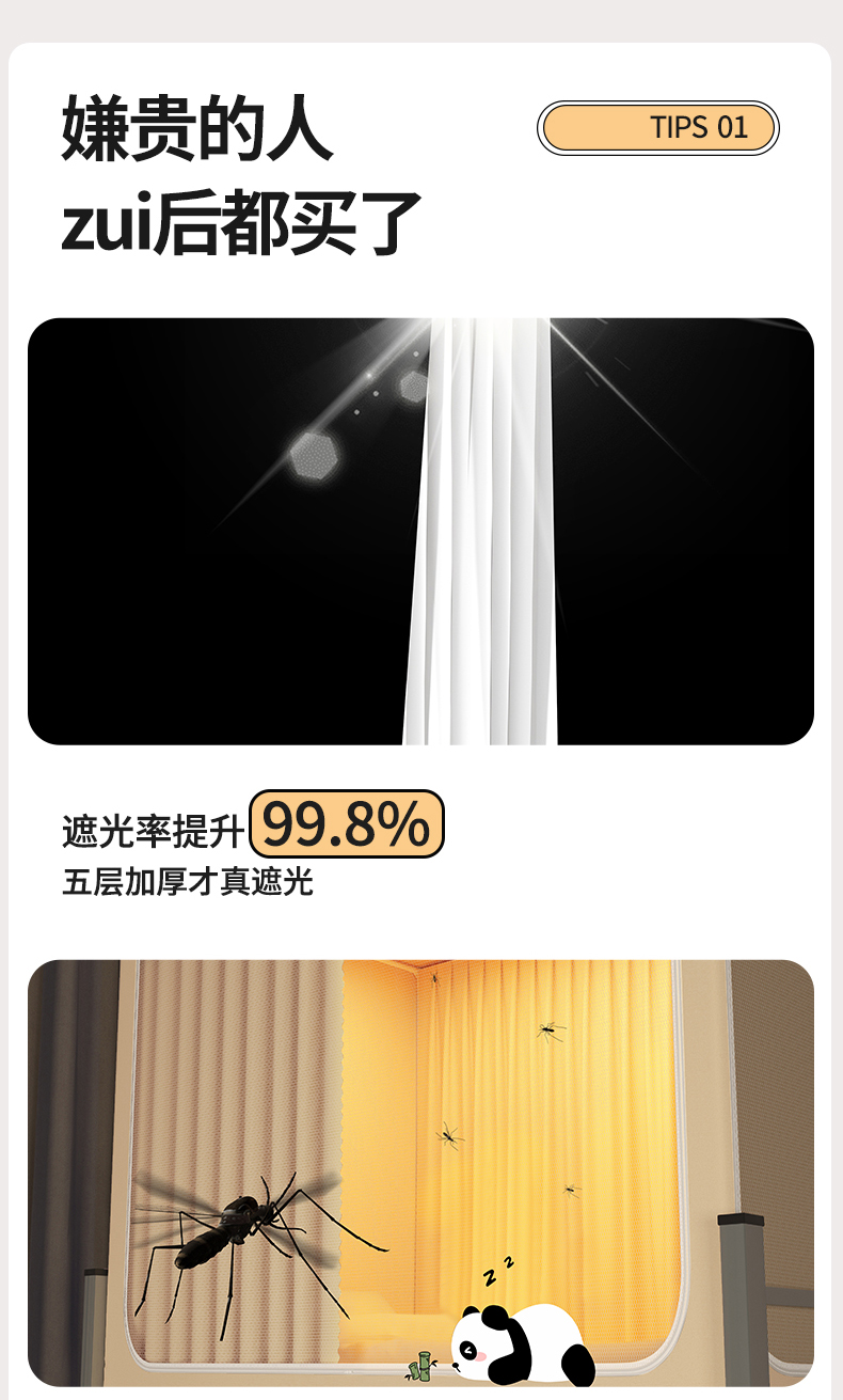 90*190*110cm(上铺三门)帐纱+升级自连支架(无帘遮光) | ¥65.00 |