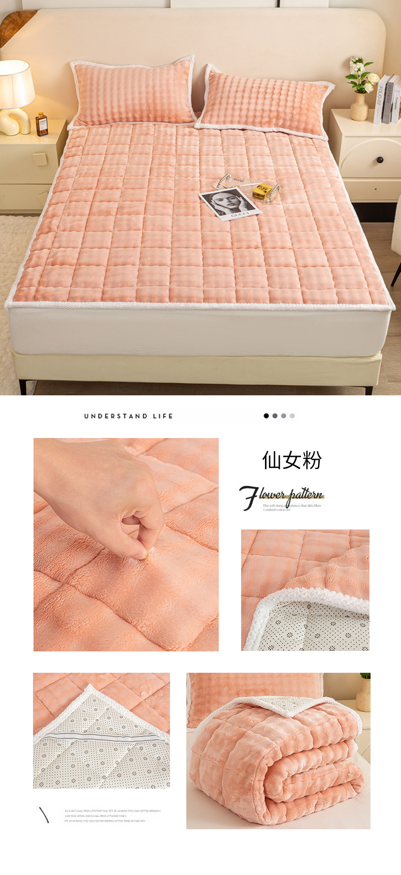 正邦家纺 2024新款奶油风加厚保暖夹棉软床垫床褥床护垫 仙女粉