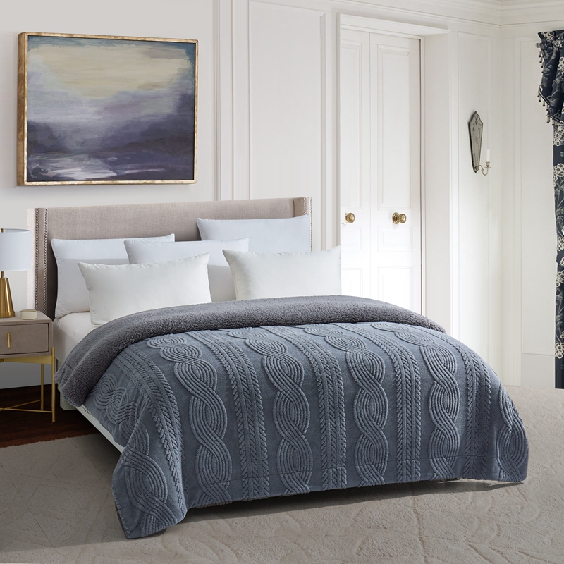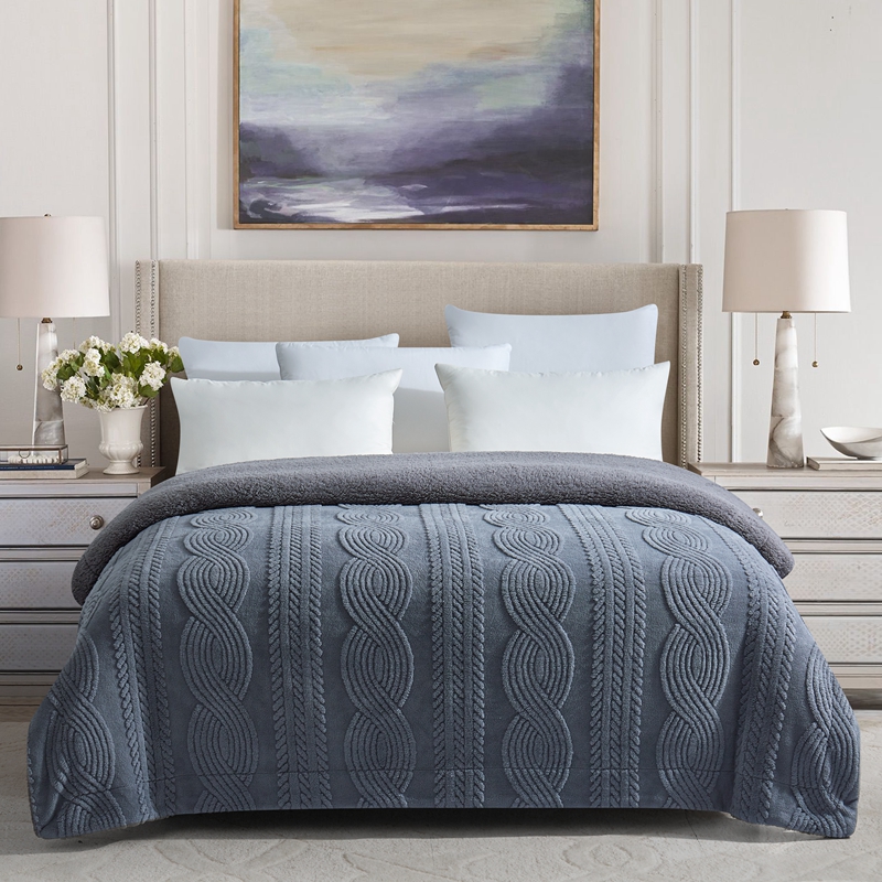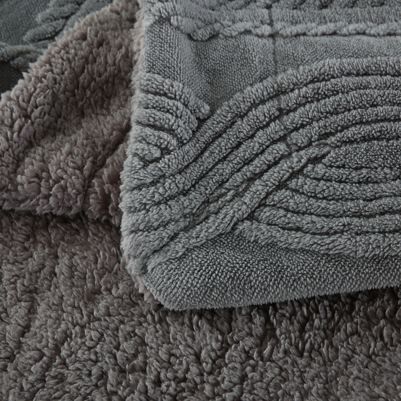 商品名称:巴木赫 2024新款8字配色双层羊羔绒毛毯 深灰