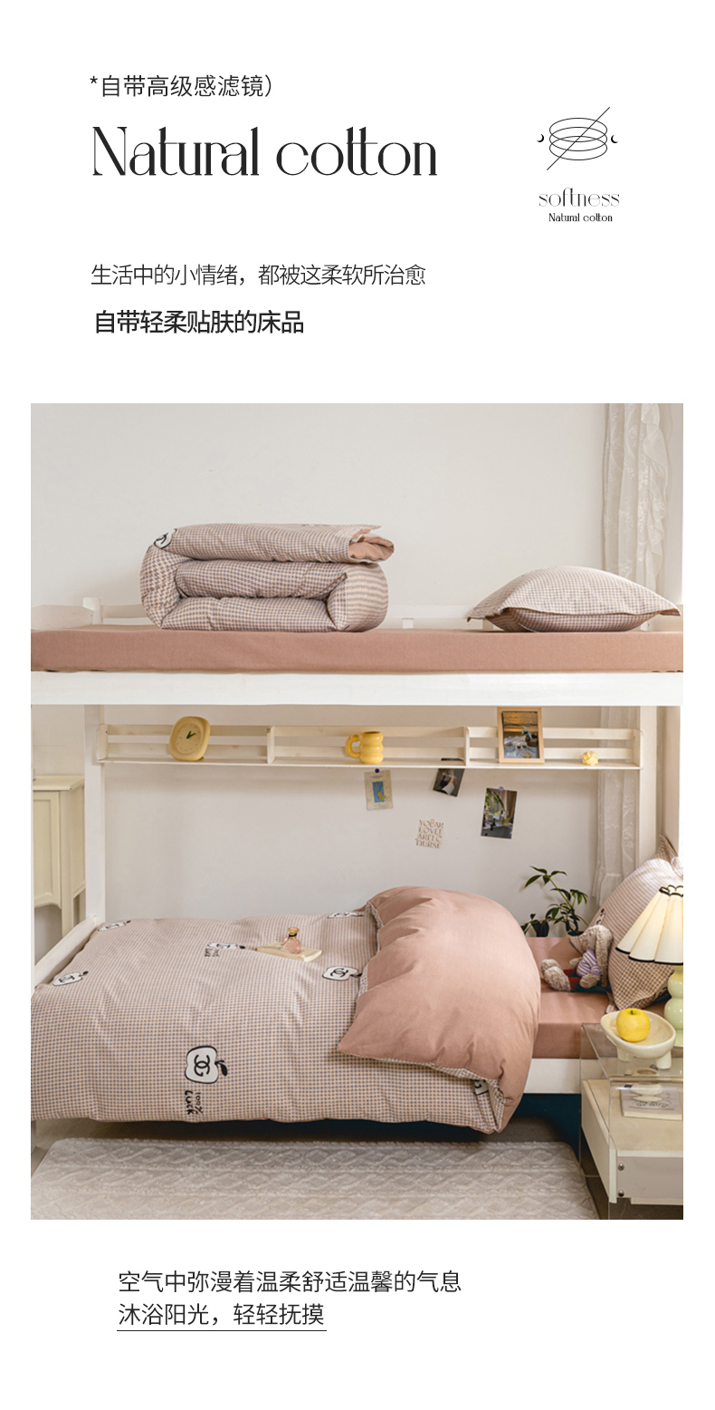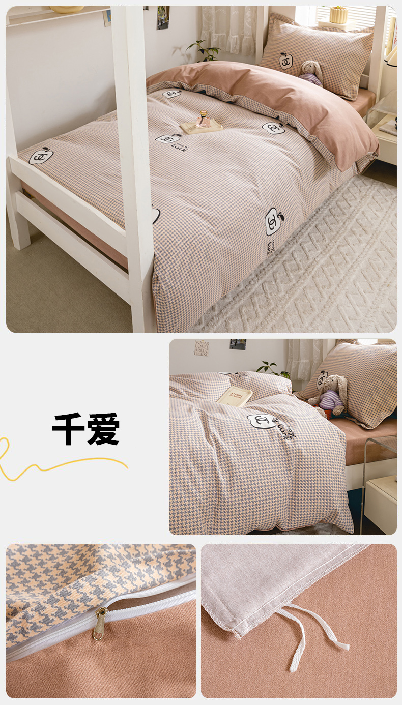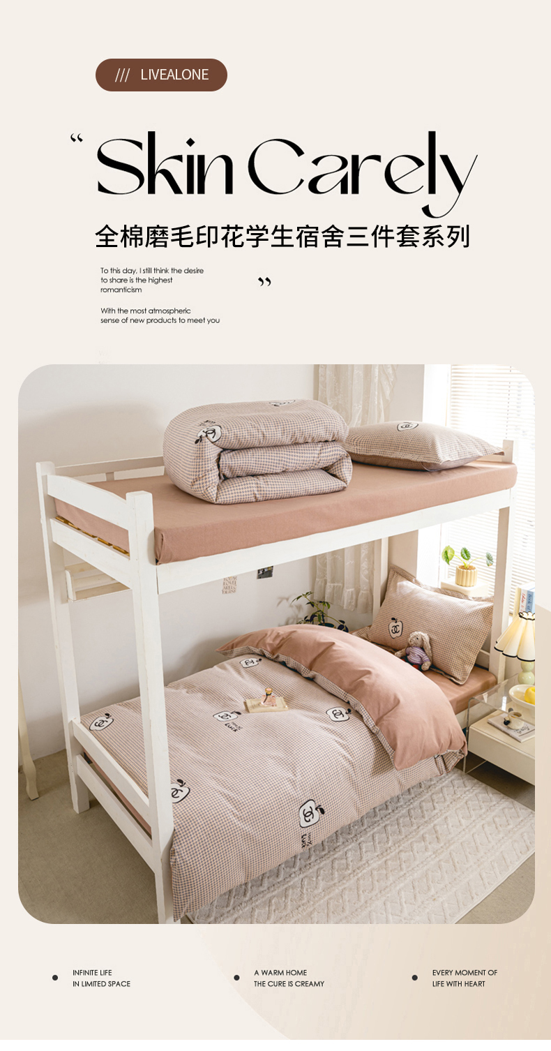 优品阁 2024新款全棉磨毛学生上下铺三件套 千爱