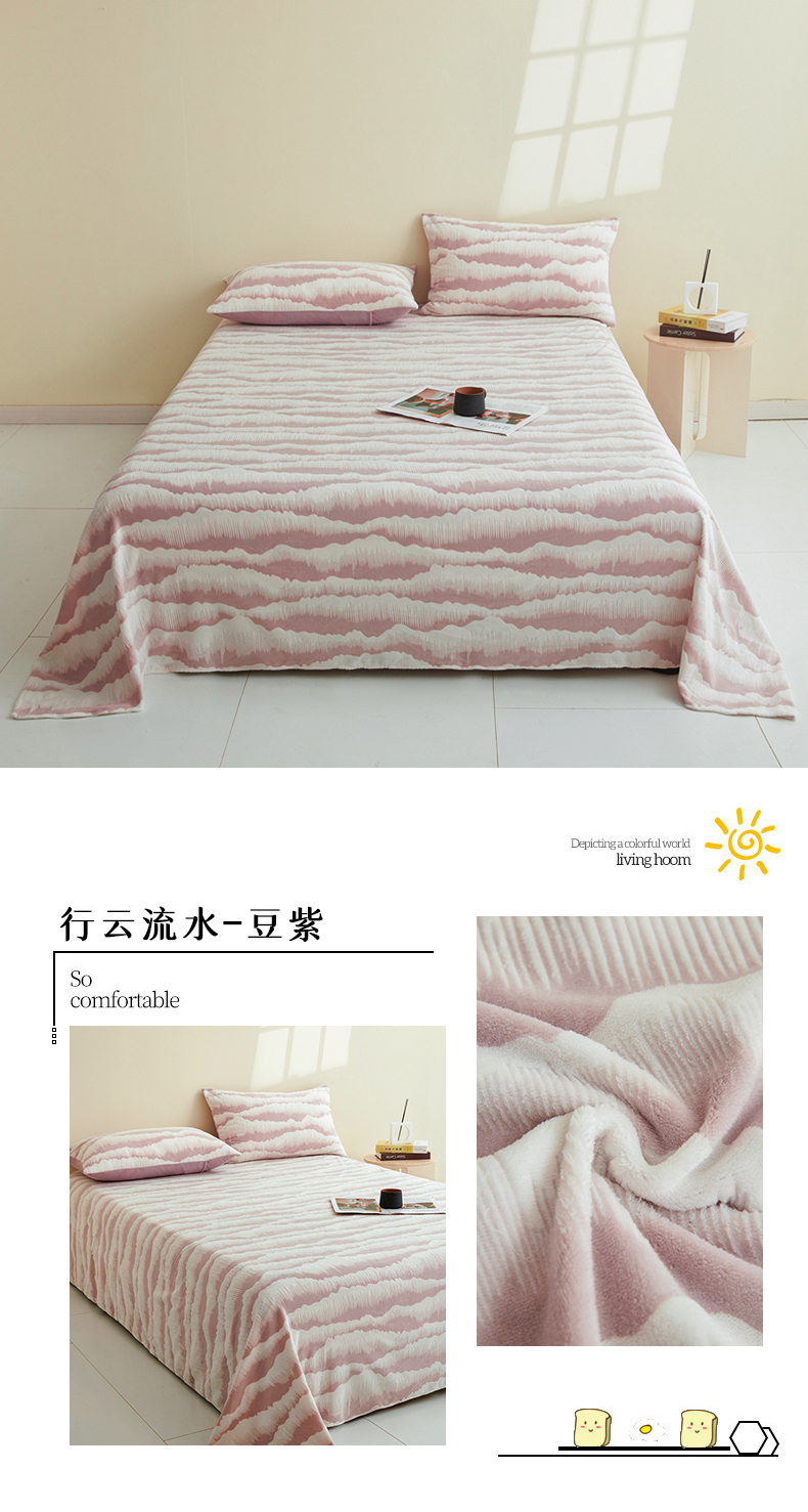 菡宝 2024新款雕花绒230g全消光牛奶绒单床单-行云流水 米杏