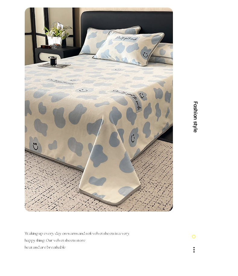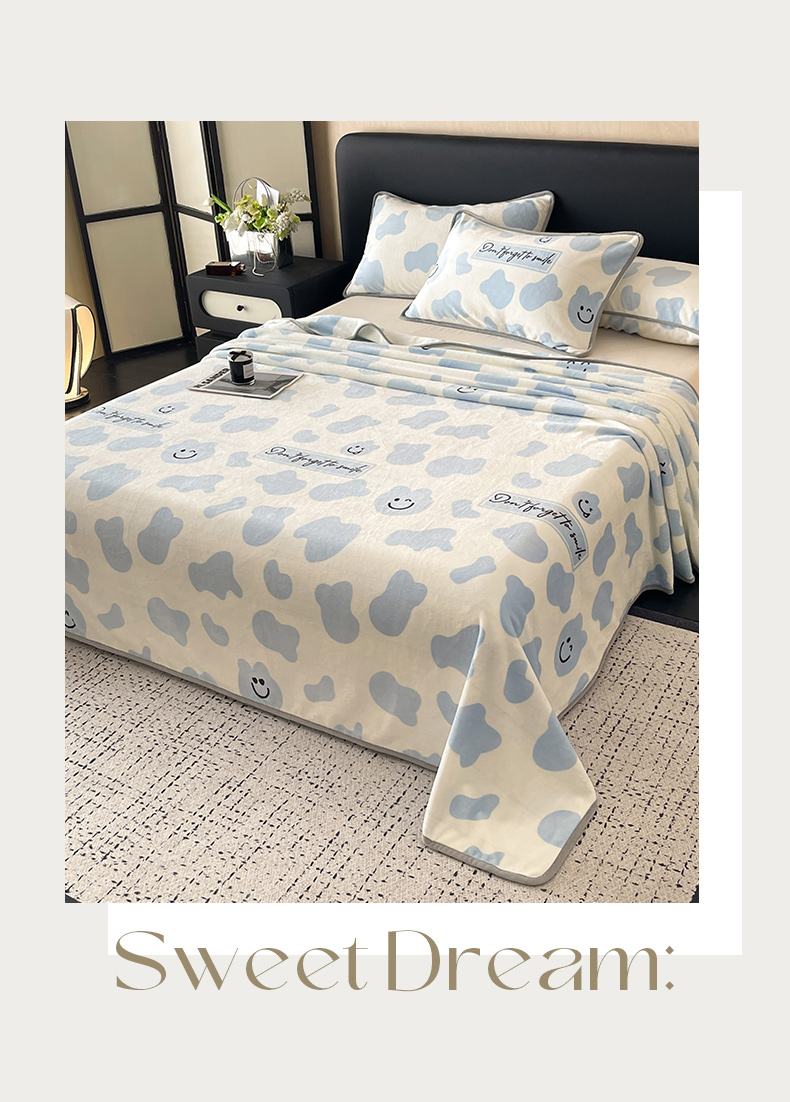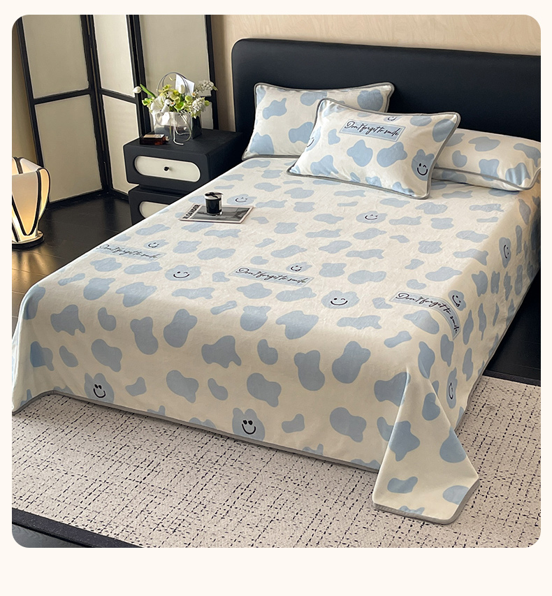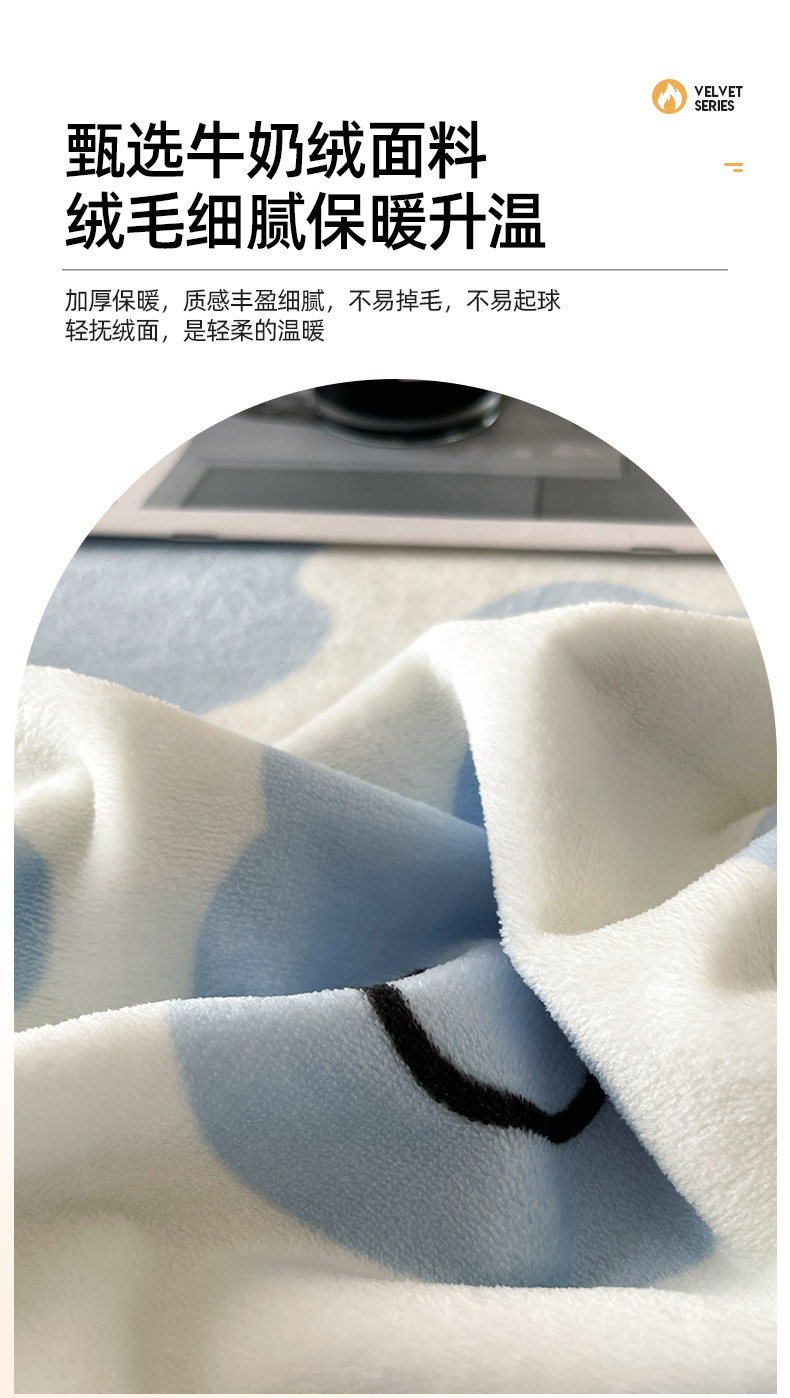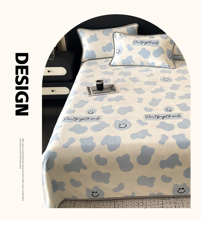商品名称:全季家居 2024新款A类纯色印花高克重加厚保暖包边牛奶绒床单单件 蓝色心情