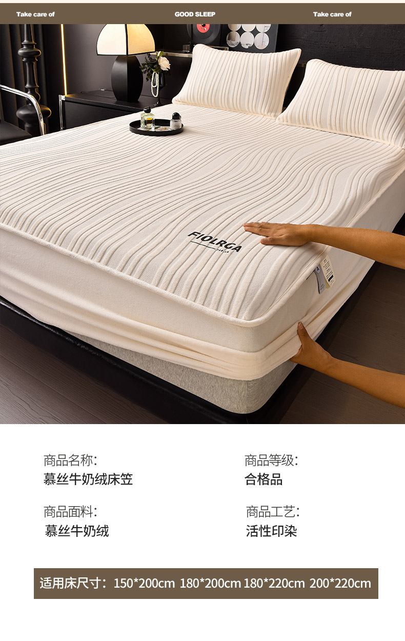 • 91家纺网 家纺一手货源 找家纺 好眠好梦家纺 2024新款慕丝牛奶绒单床笠 米白