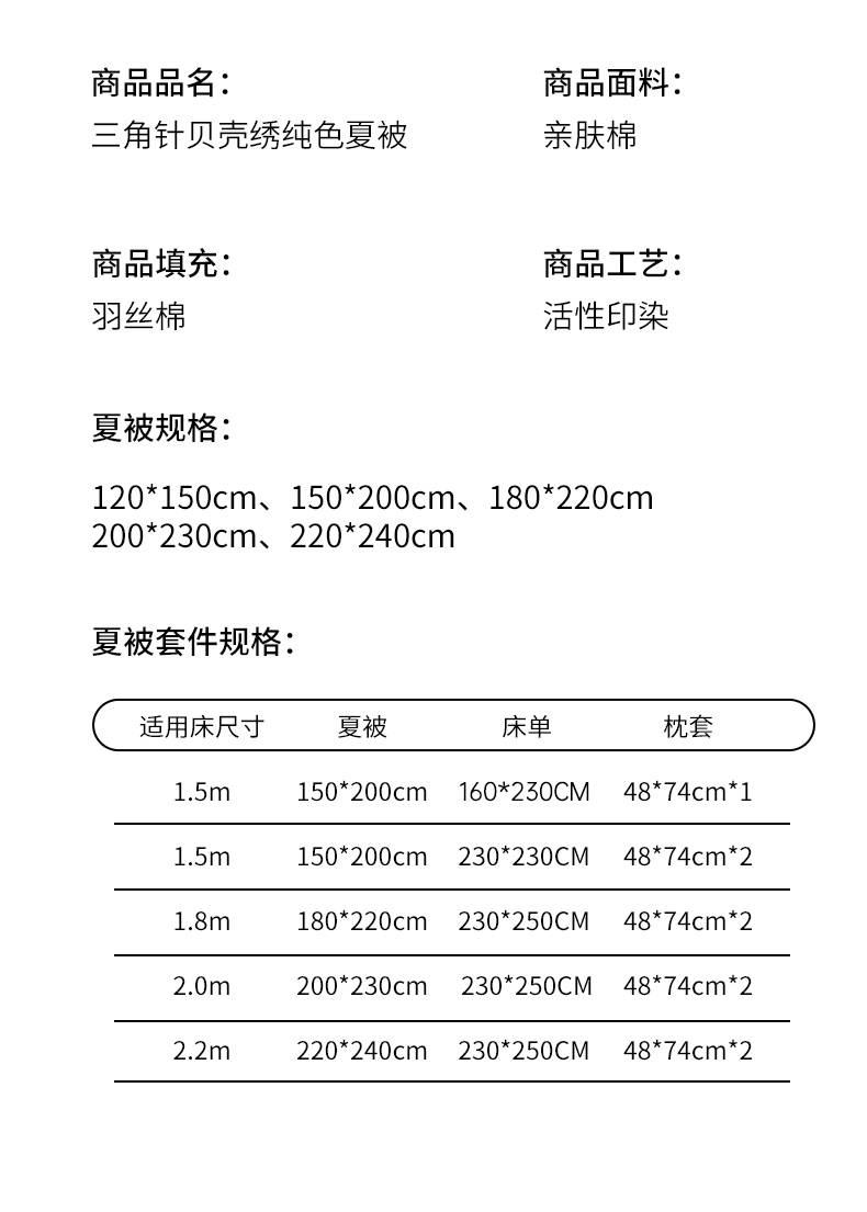 商品名称:春光里 2024新款三角针贝壳绣纯色夏被