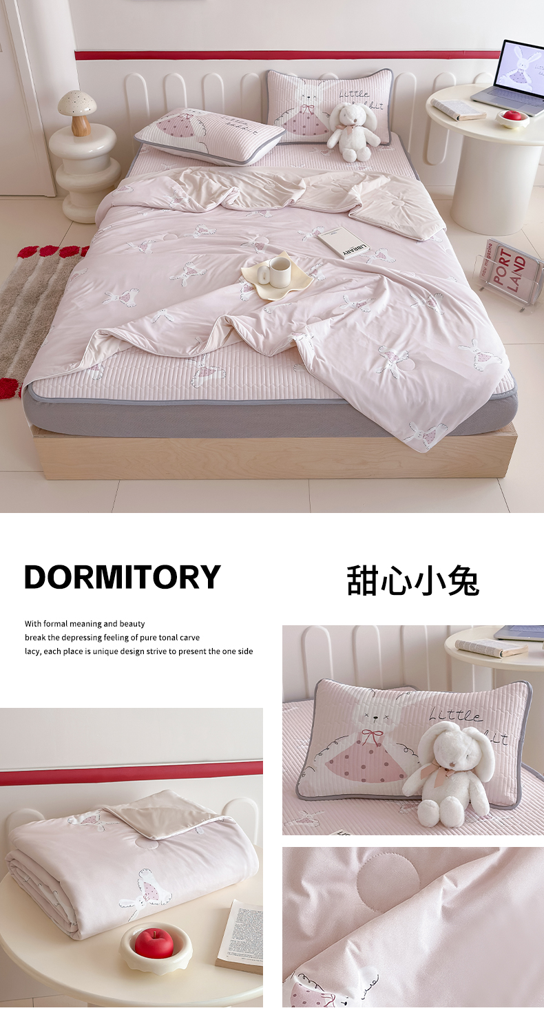 • 91家纺网 家纺一手货源 找家纺 RYB红黄兰 2025新款INS原创超萌卡通锦氨冰皮夏被夏凉被空调被 甜心小兔