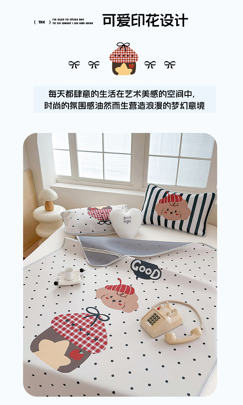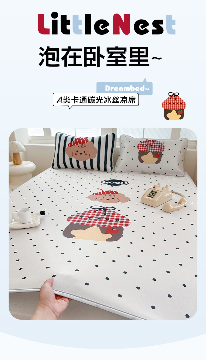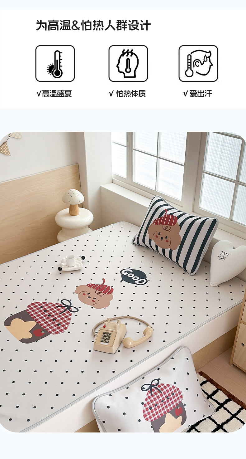 RYB红黄兰 2025新款INS原创超萌卡通大版碳光冰丝凉席三明治空调席三件套席子 宠物之家