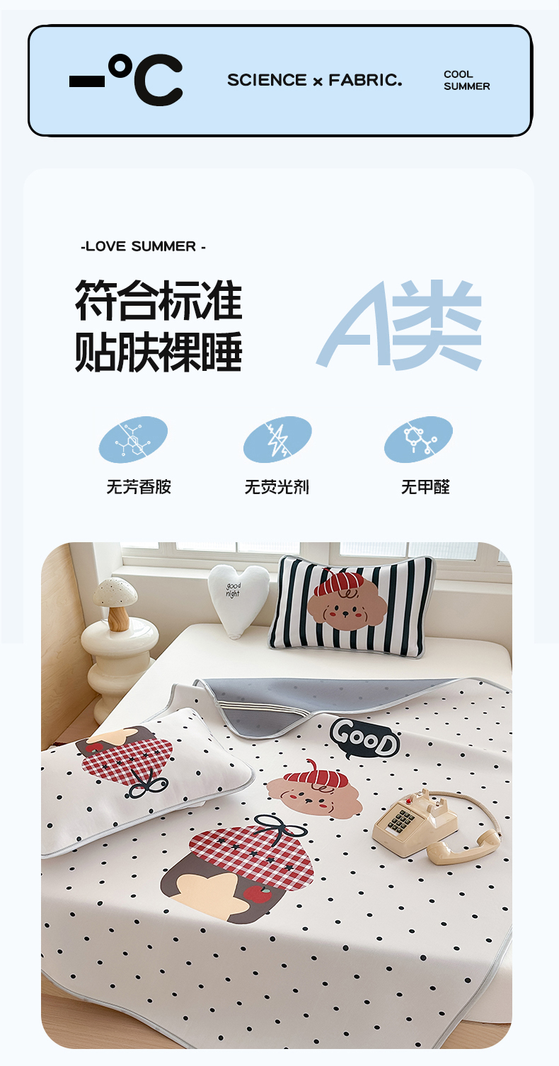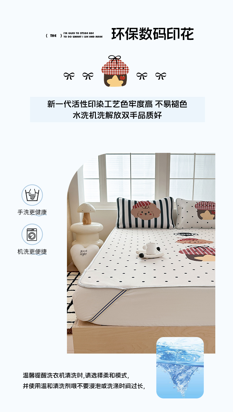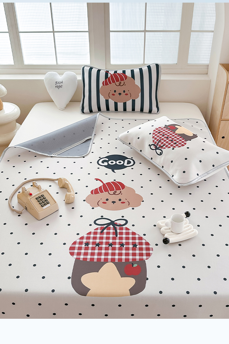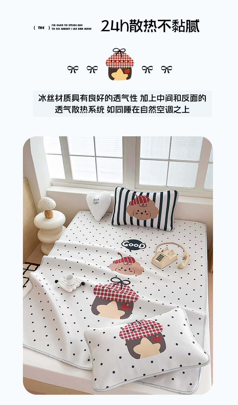 RYB红黄兰 2025新款INS原创超萌卡通大版碳光冰丝凉席三明治空调席三件套席子 宠物之家