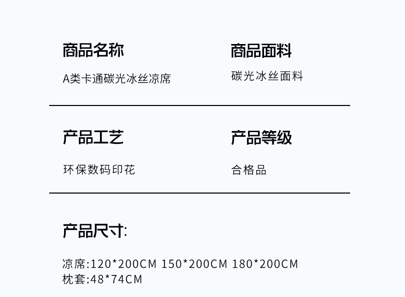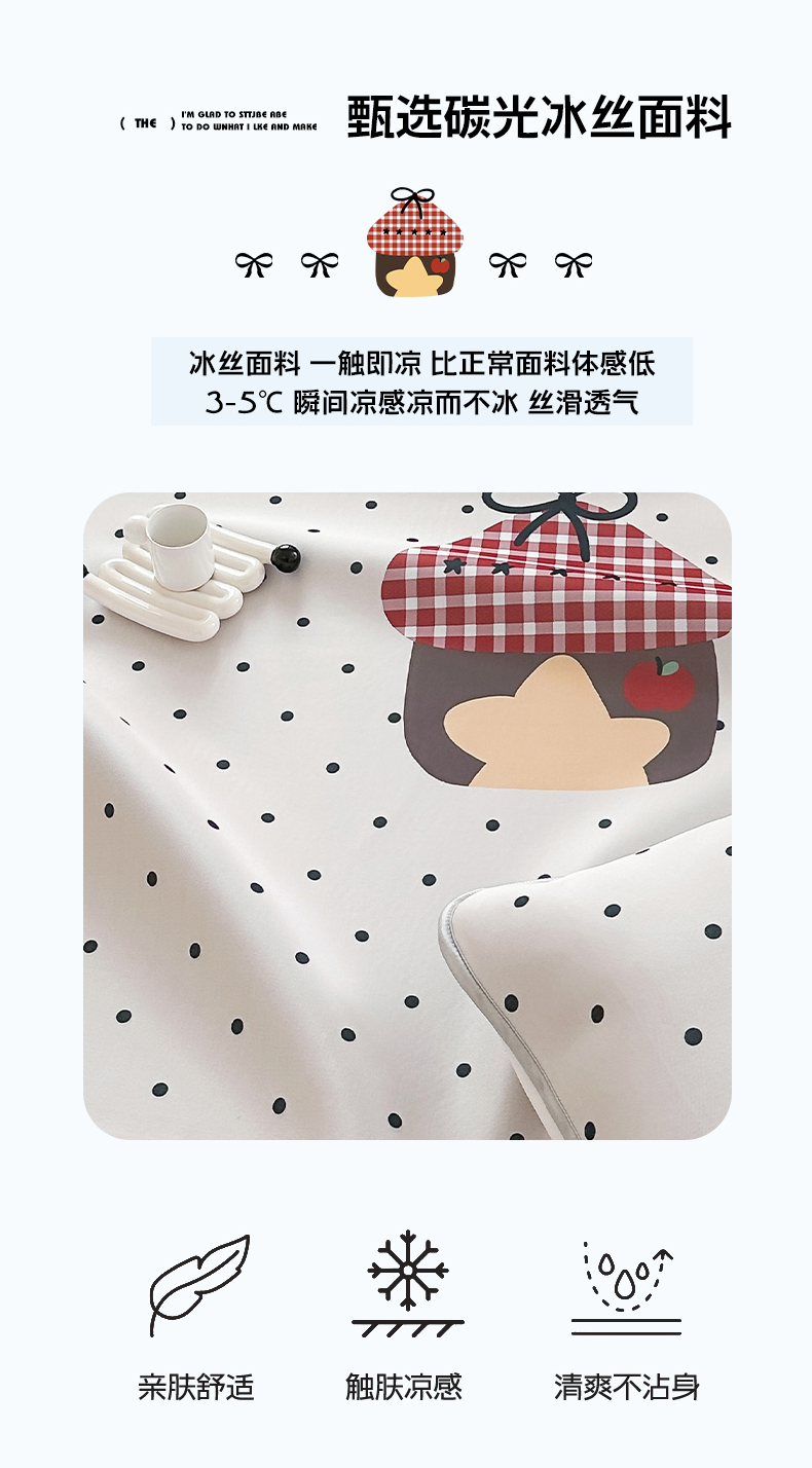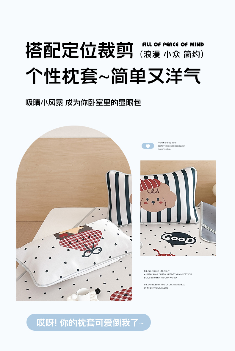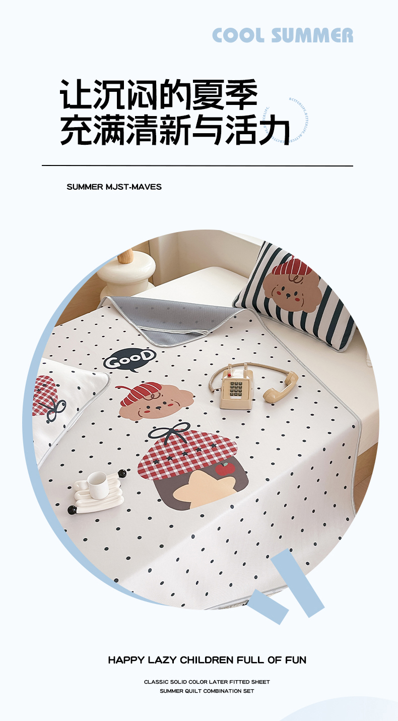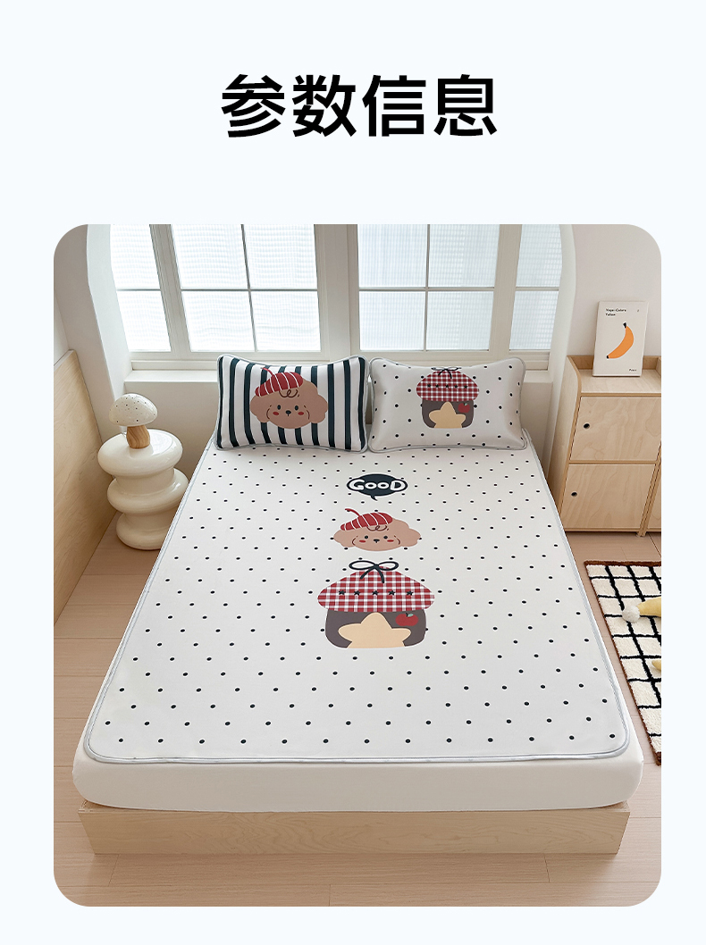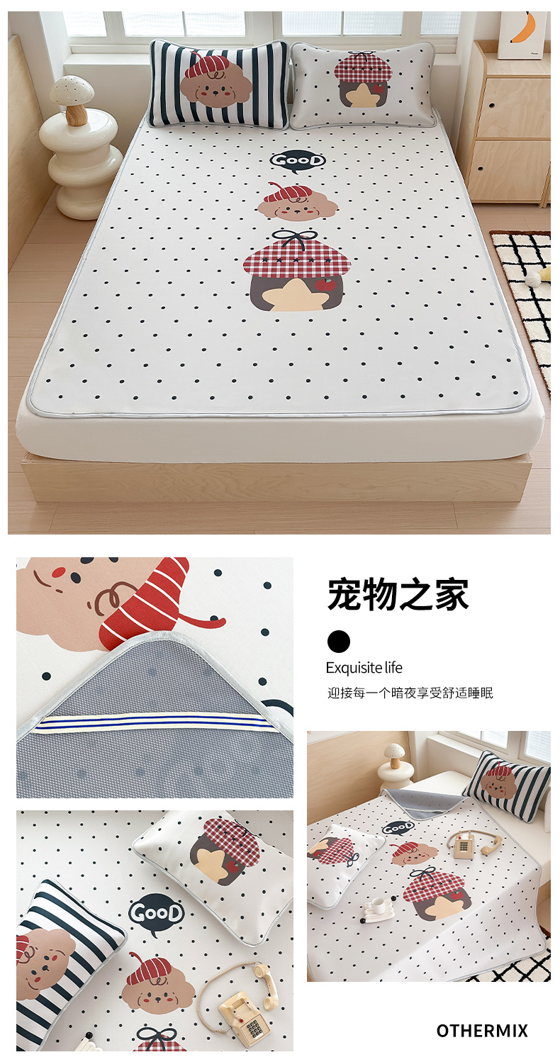 商品名称:RYB红黄兰 2025新款INS原创超萌卡通大版碳光冰丝凉席三明治空调席三件套席子 宠物之家