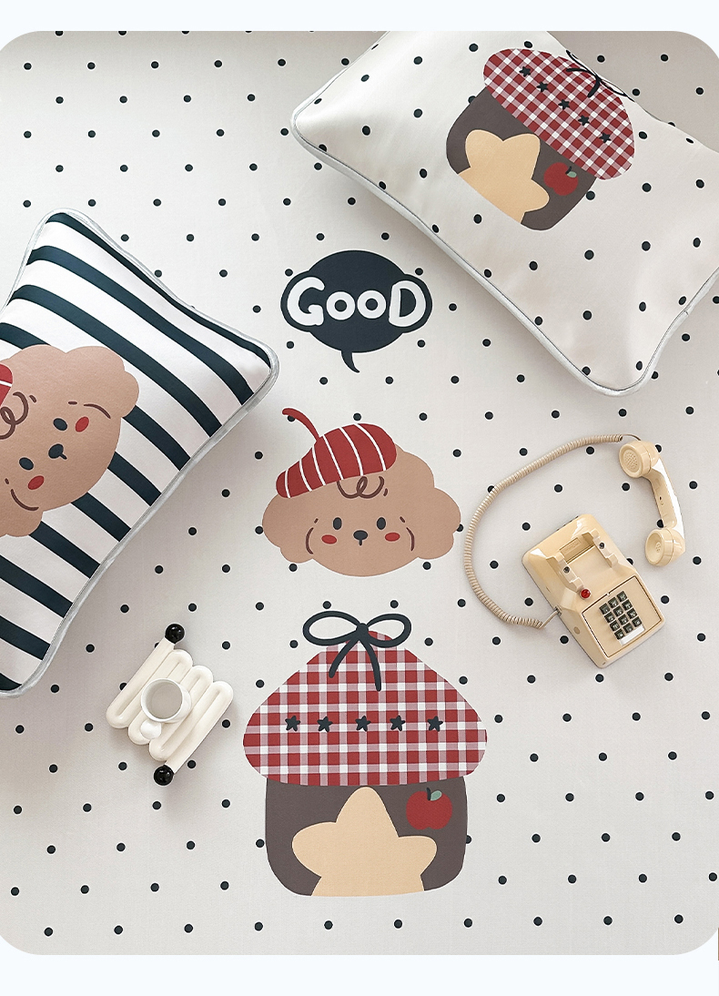 (总)RYB红黄兰 2025新款设计师原创A版抽条兔兔绒B版牛奶绒印花四件套,咖色潦草狗,波点黑猫,包装展示图,星星蝴蝶结,蓝色兔兔,奶油西高地