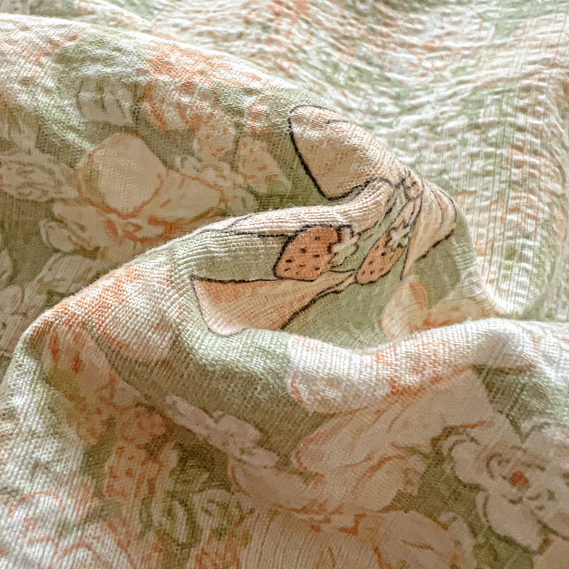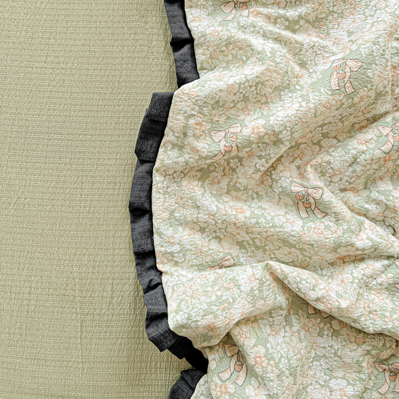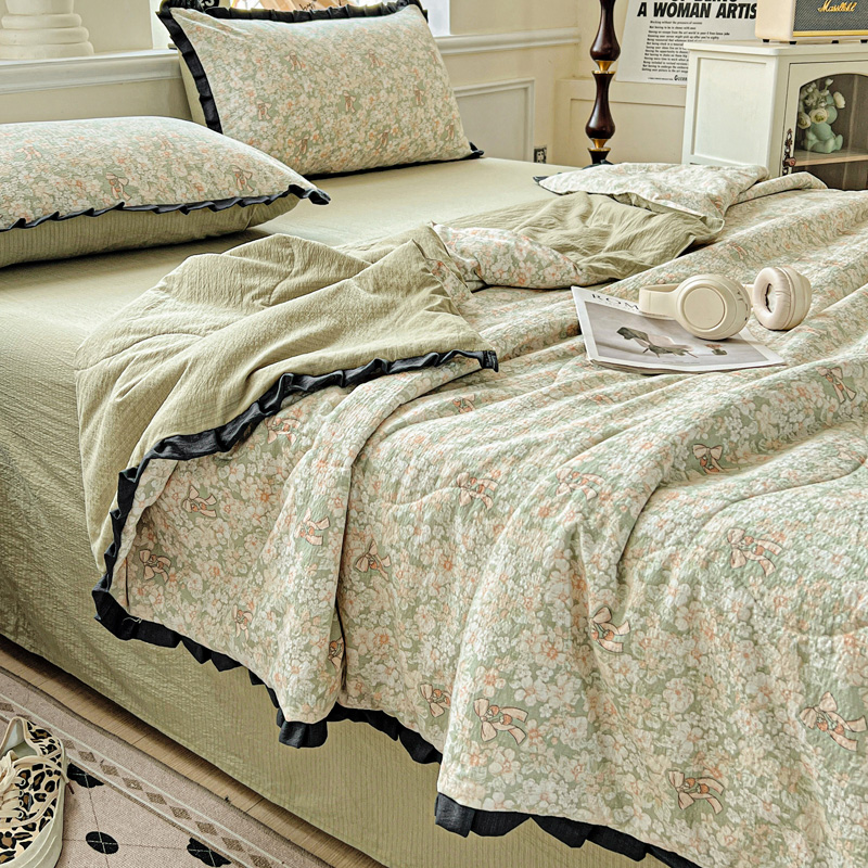 仟网汇2025新款赫本风花边夏被空调被 花束绿