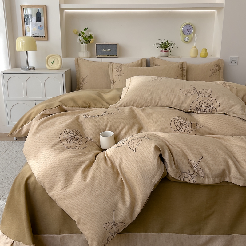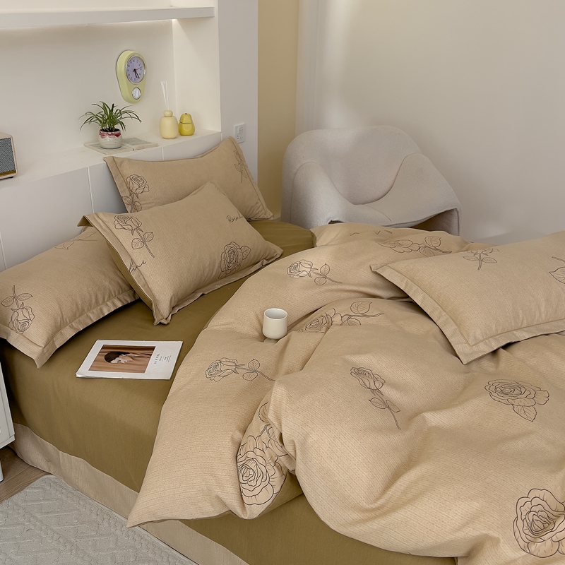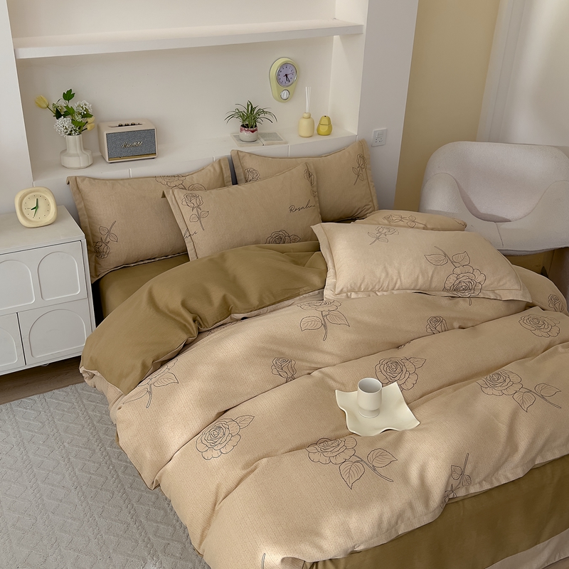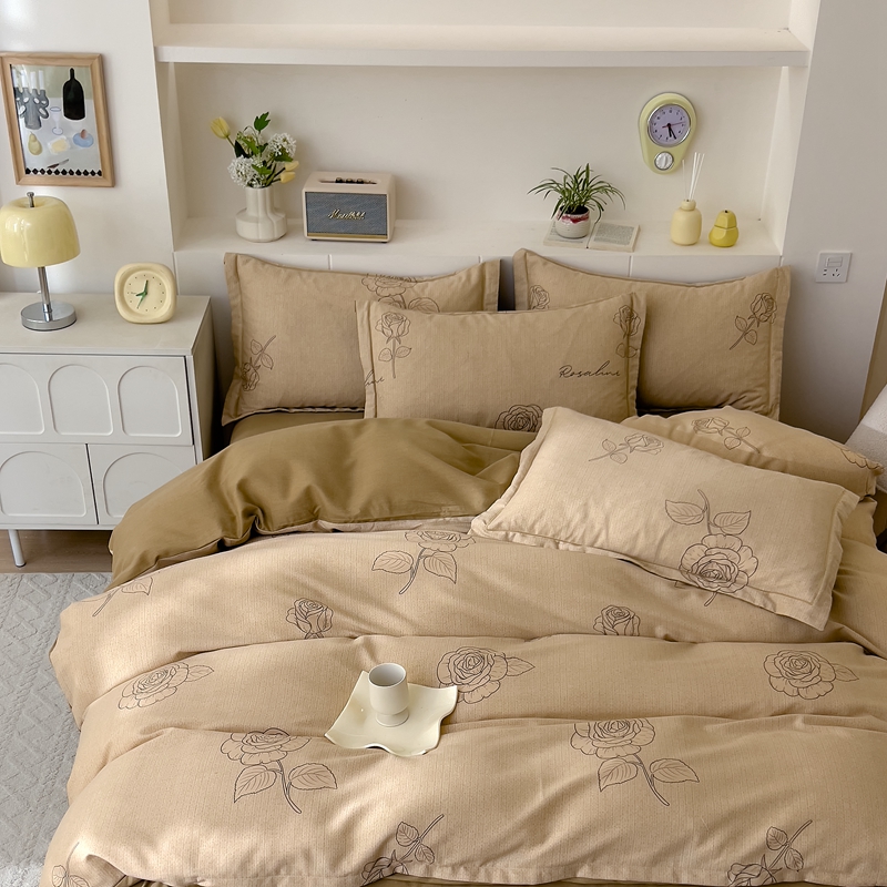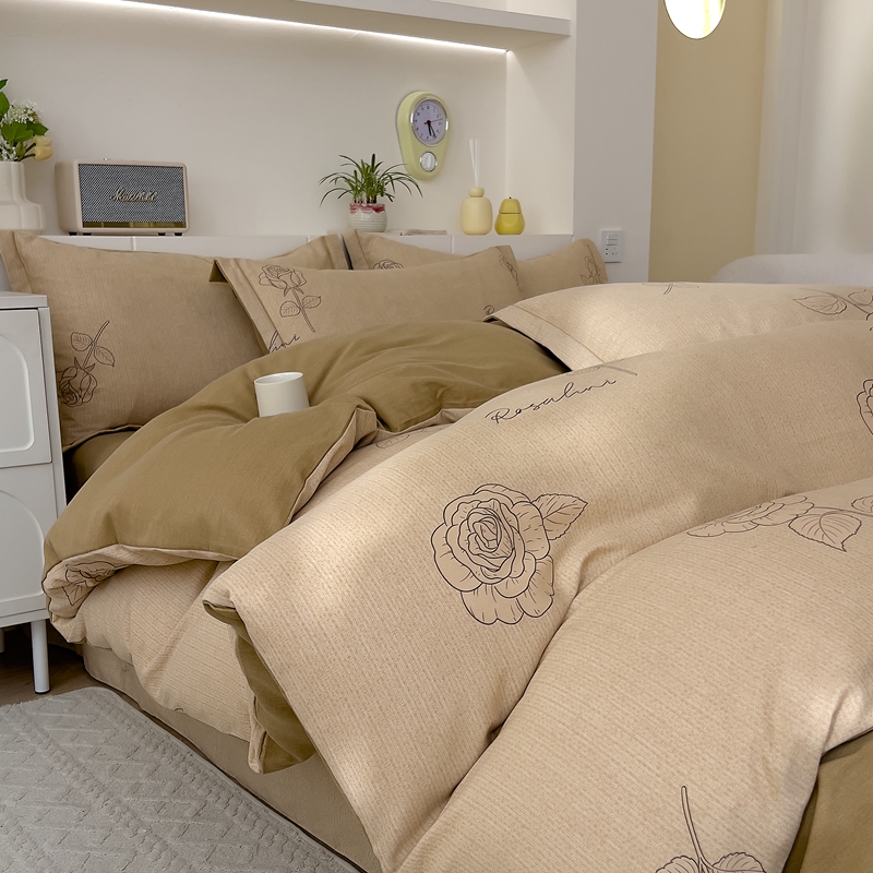 当前位置: 91家纺网 > 商品网购 > 床品套件 > 四件套 > 全棉普通四件套 > 优品阁 2024新款亲肤舒适全棉磨毛四件套学生三件套系列 法风玫瑰-咖