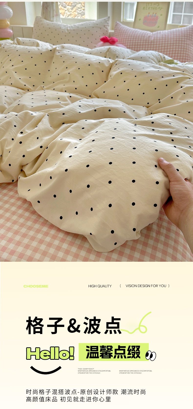 当前位置: 91家纺网 > 商品网购 > 床品套件 > 四件套 > 水洗棉四件套 > 冕悠家纺 2025新款少女心超柔加厚混搭格子水洗棉四件套(加微信提供买家秀 ) 米点+粉格