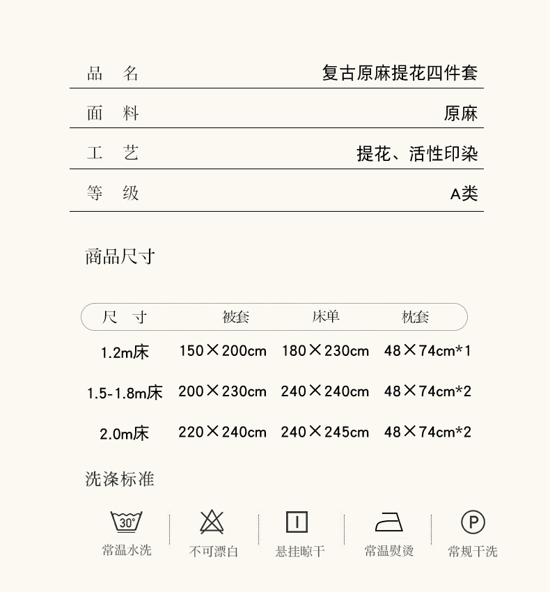 商品名称:金梦拉家纺 2025秋冬爆款新品高克重加厚原麻亚麻皱皱纱印花四件套 蔓叶兰