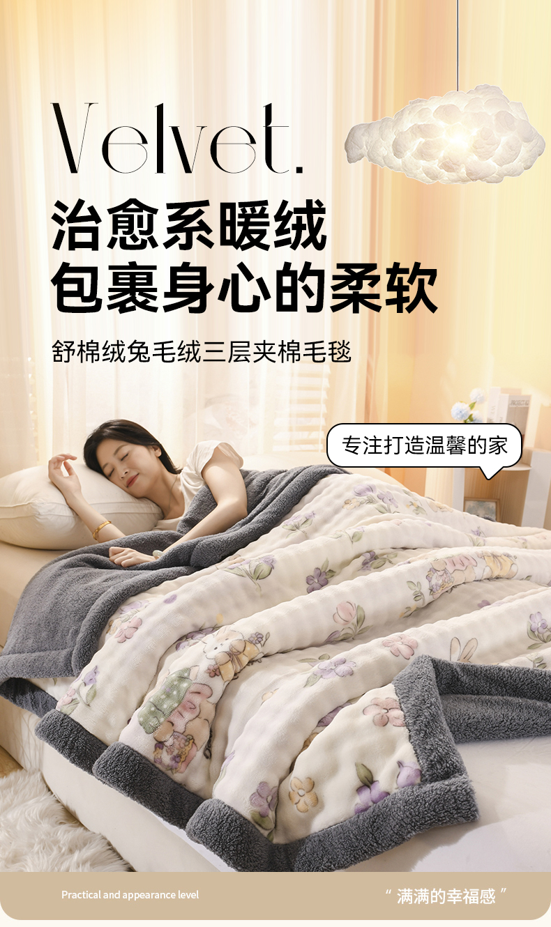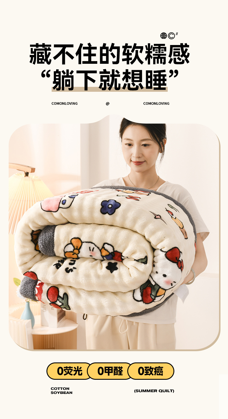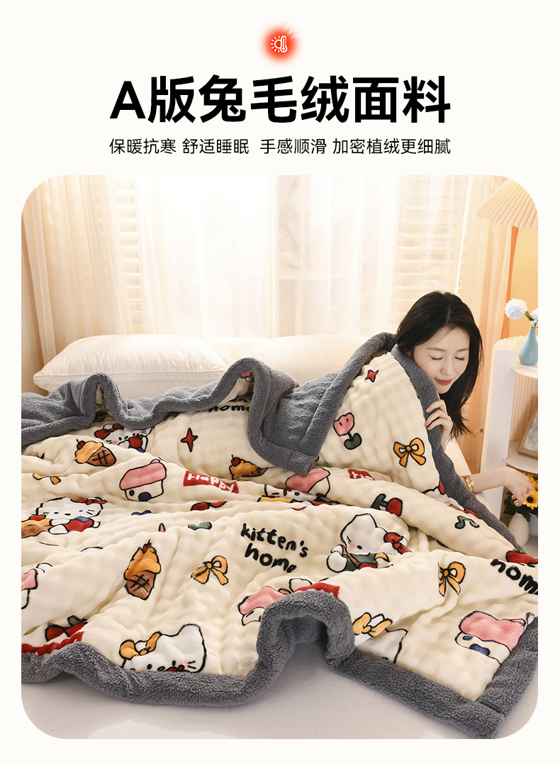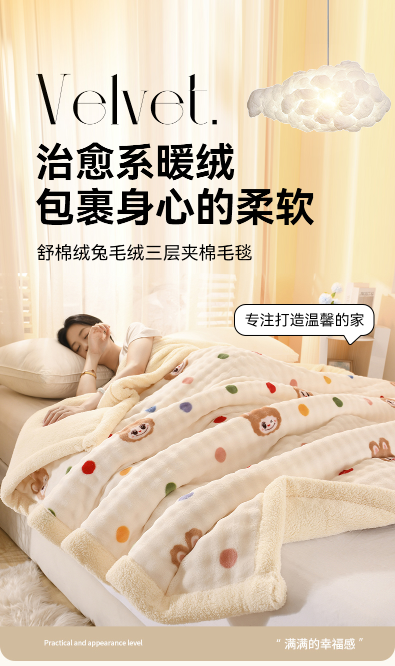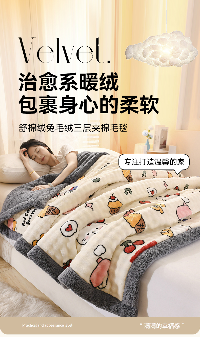 (总)恋绒家居 2025新款舒棉绒毛毯三层夹棉牛奶绒印花毛毯卡通秋冬午睡毯多功能盖毯可机洗毯子