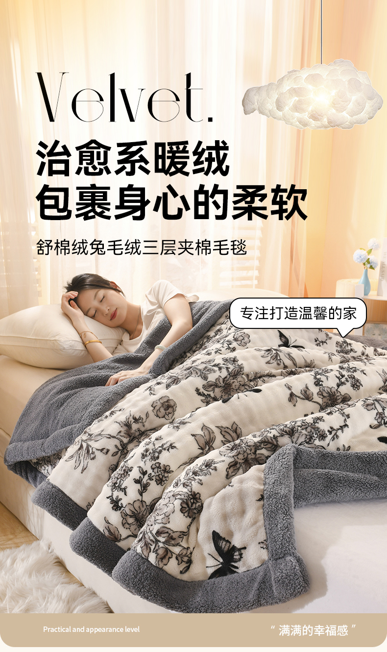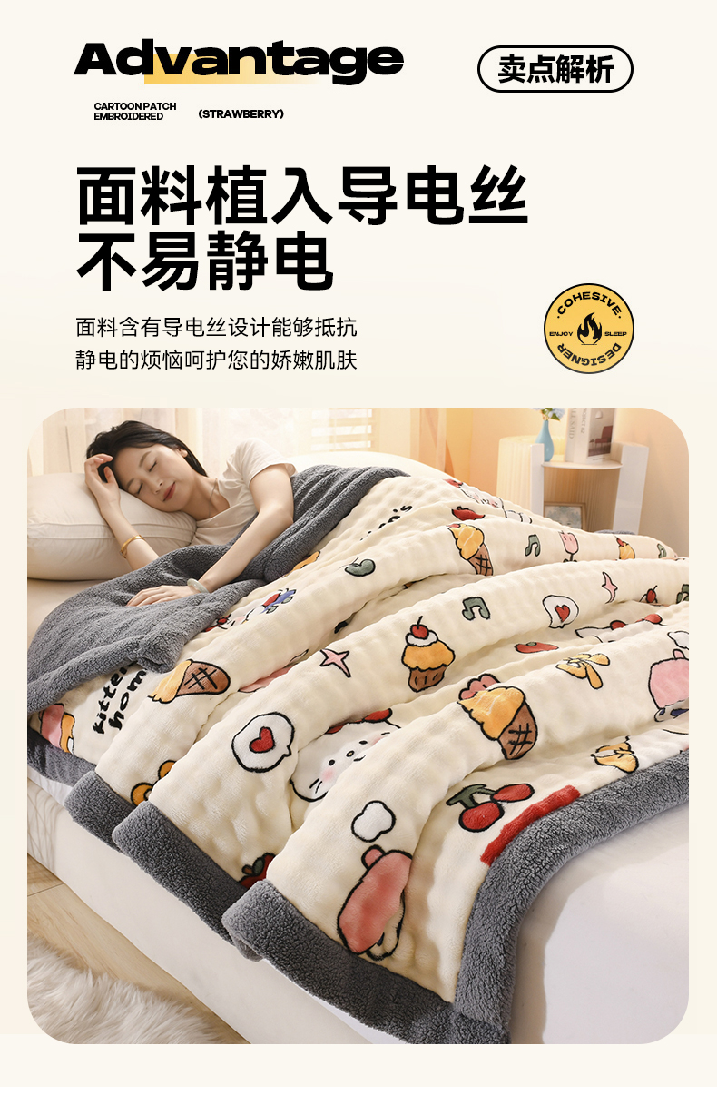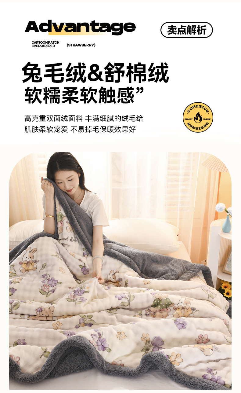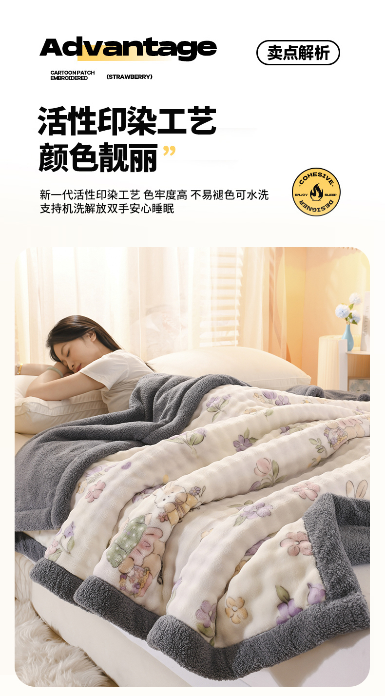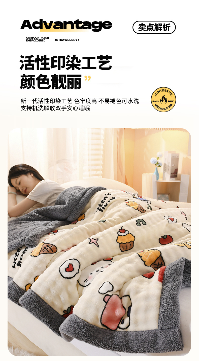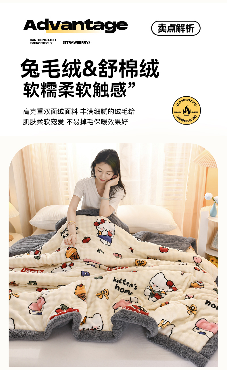 (总)恋绒家居 2025新款舒棉绒毛毯三层夹棉牛奶绒印花毛毯卡通秋冬午睡毯多功能盖毯可机洗毯子