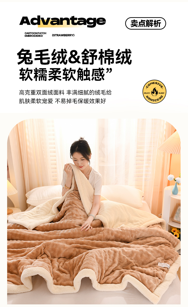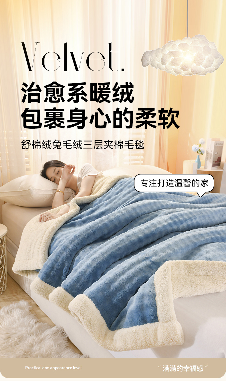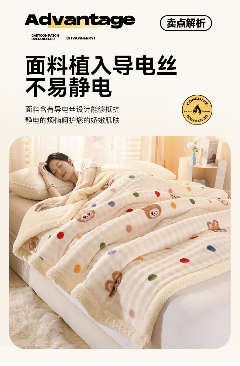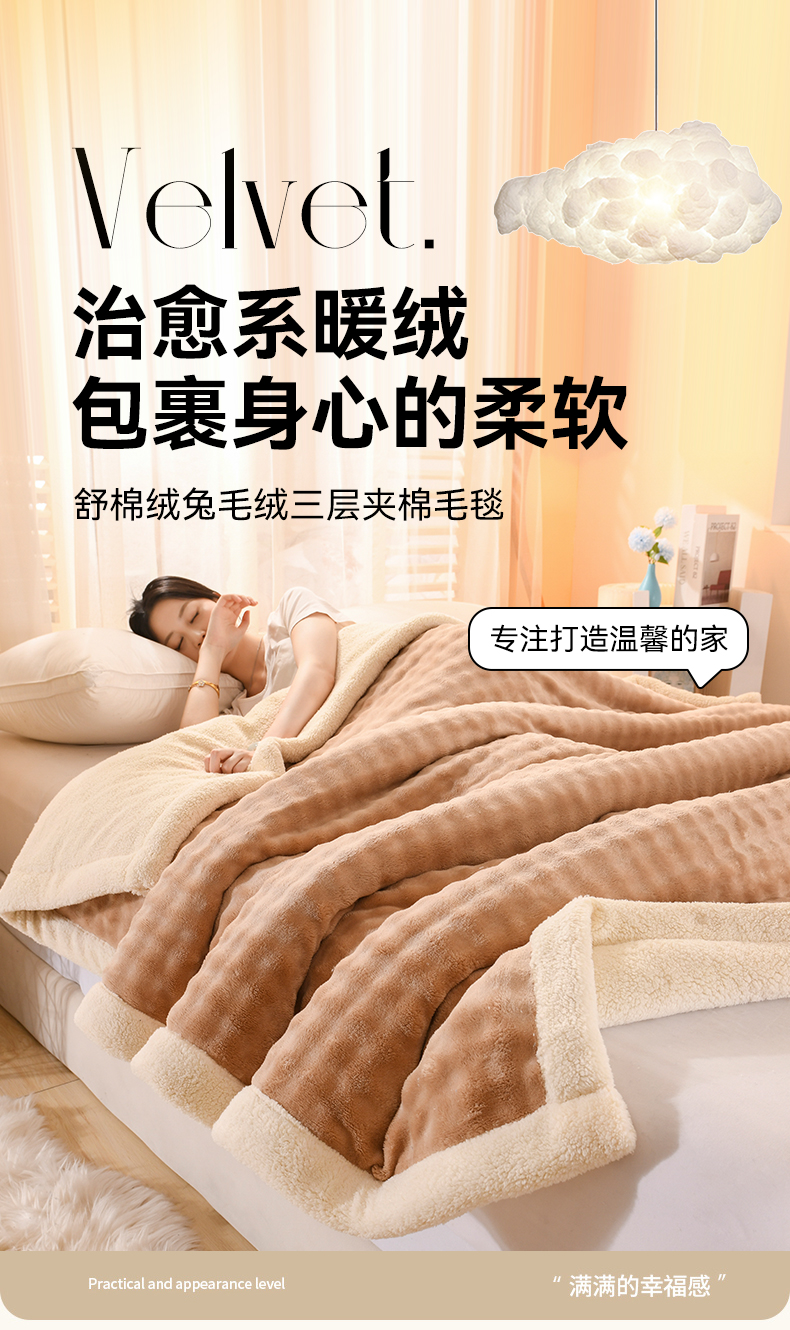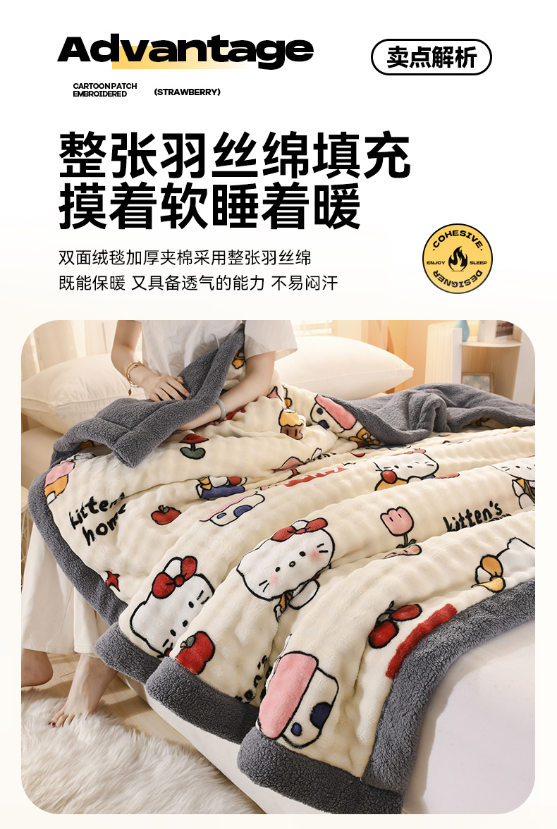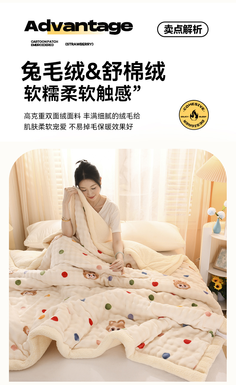 (总)恋绒家居 2025新款舒棉绒毛毯三层夹棉牛奶绒印花毛毯卡通秋冬午睡毯多功能盖毯可机洗毯子