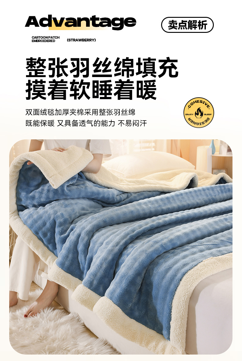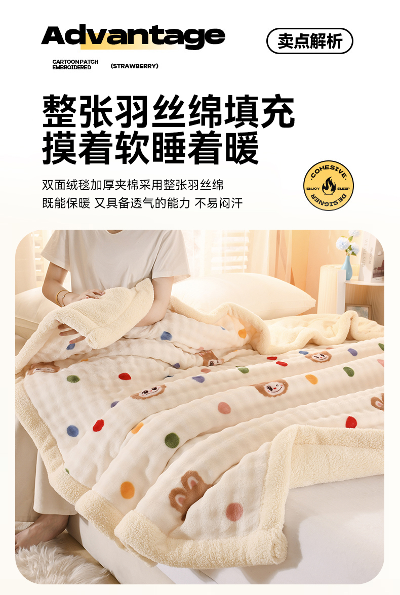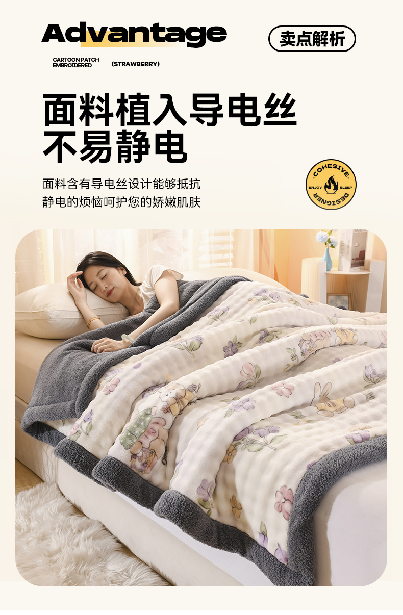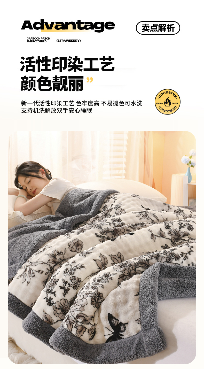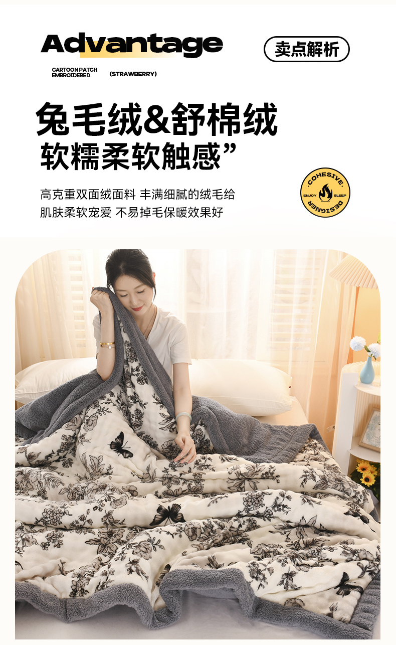 (总)恋绒家居 2025新款舒棉绒毛毯三层夹棉牛奶绒印花毛毯卡通秋冬午睡毯多功能盖毯可机洗毯子