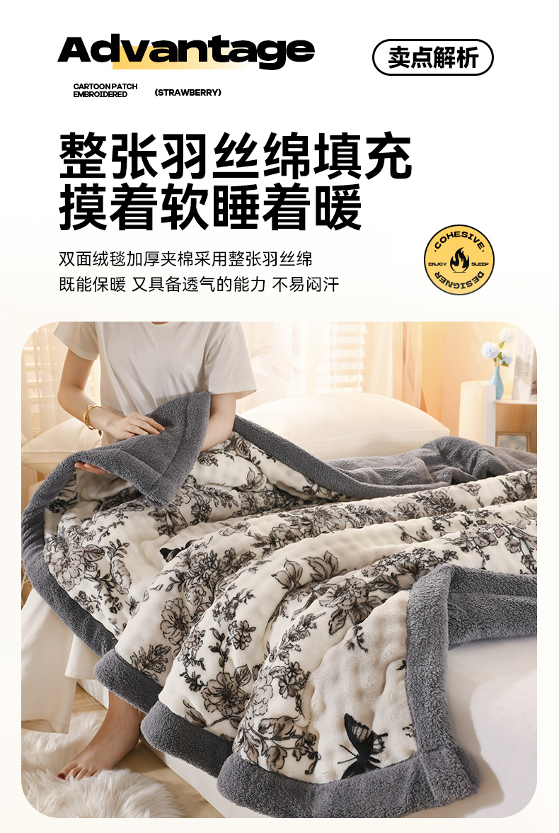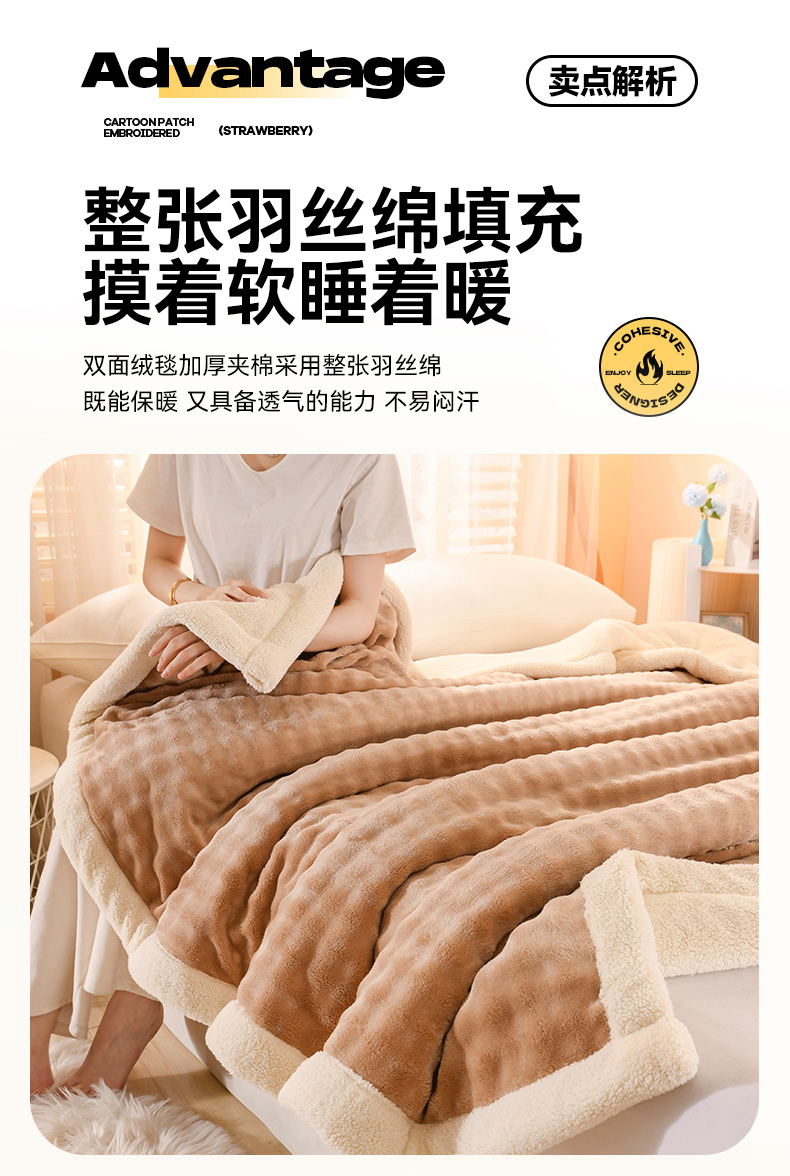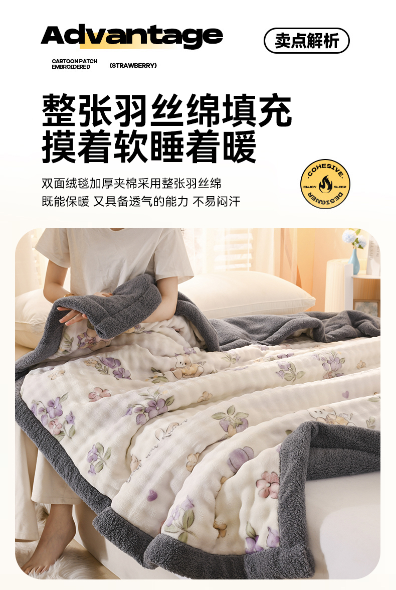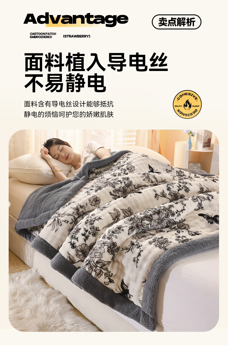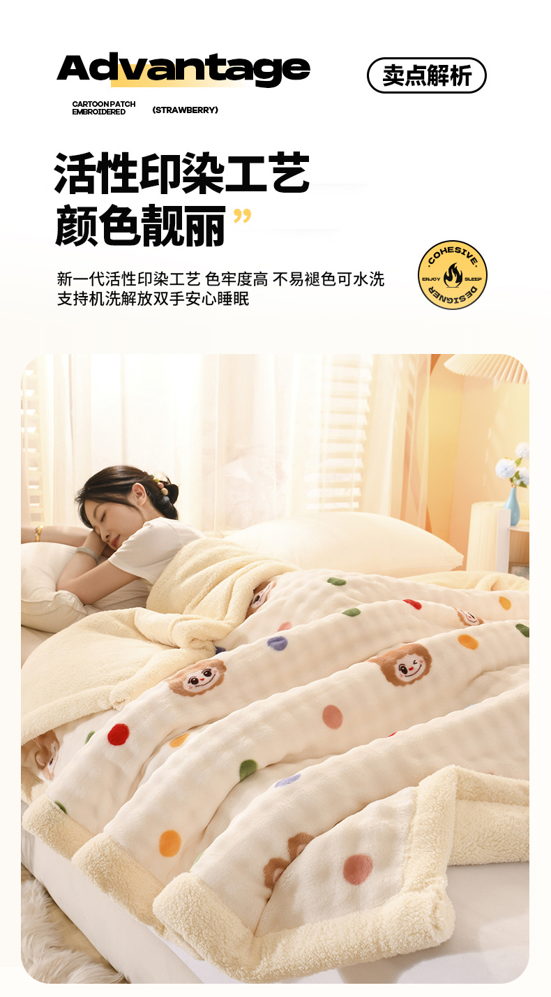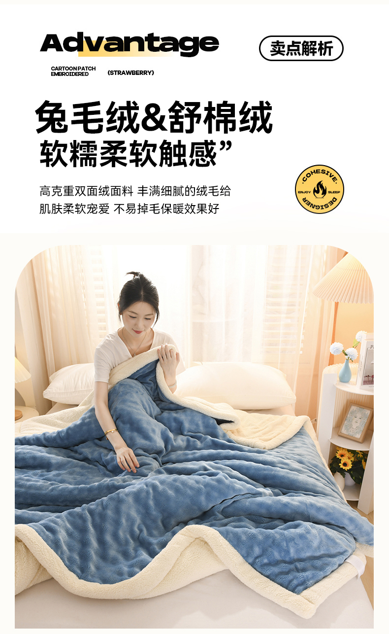 (总)恋绒家居 2025新款舒棉绒毛毯三层夹棉牛奶绒印花毛毯卡通秋冬午睡毯多功能盖毯可机洗毯子