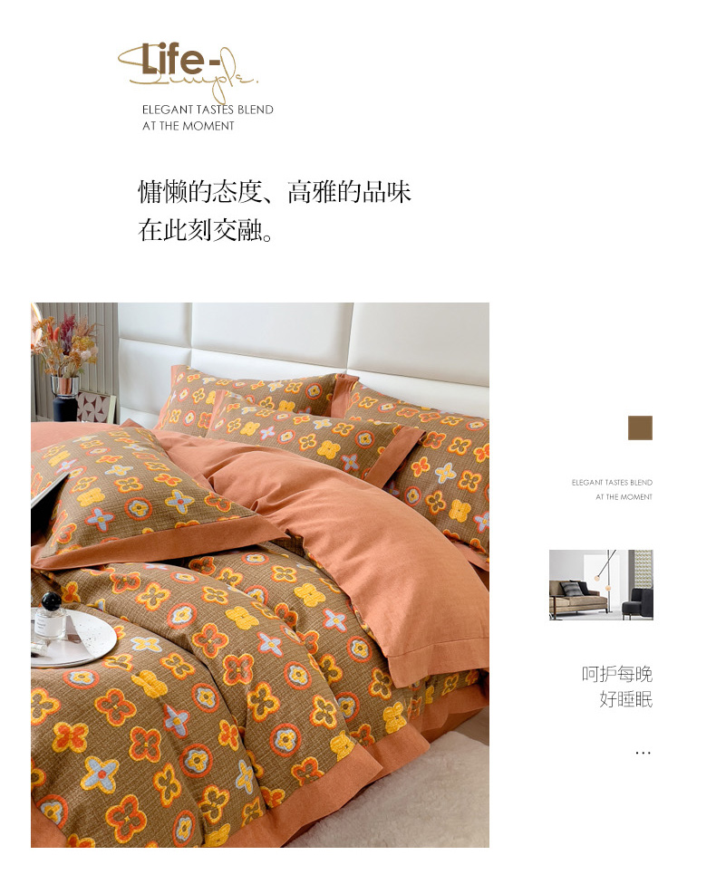 当前位置: 91家纺网 > 商品网购 > 床品套件 > 四件套 > 全棉普通四件套 > 印季家纺 2025新款生态全棉纯棉磨毛混纺欧式花边款四件套 路易登(咖)