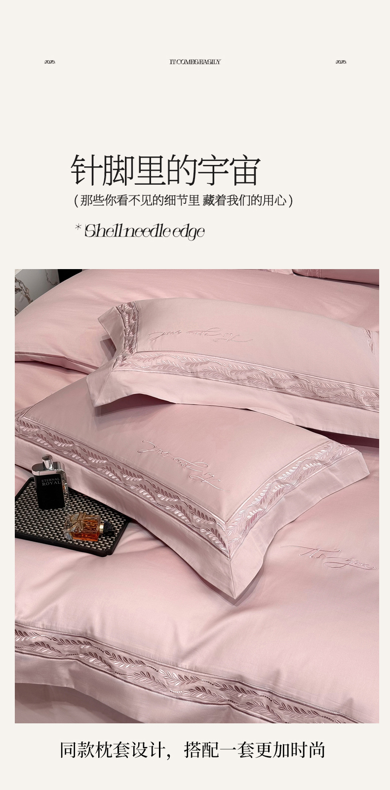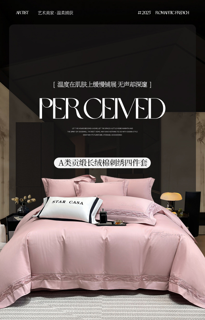 (总)星蕴家纺 2026新款A类新疆全棉刺绣四件套-千禧,高级灰,千禧粉,奶昔白,浅香槟